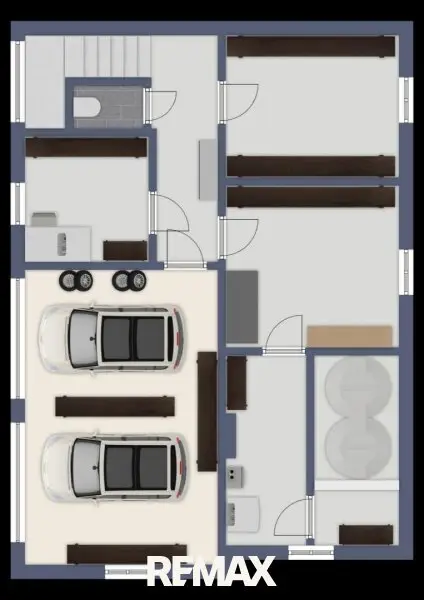 Im Kellergeschoss befinden sich zwei Abstellräume, eine Werkstatt, ein WC sowie der Heizraum. Vom Vorraum gelangen Sie direkt in die Doppelgarage.