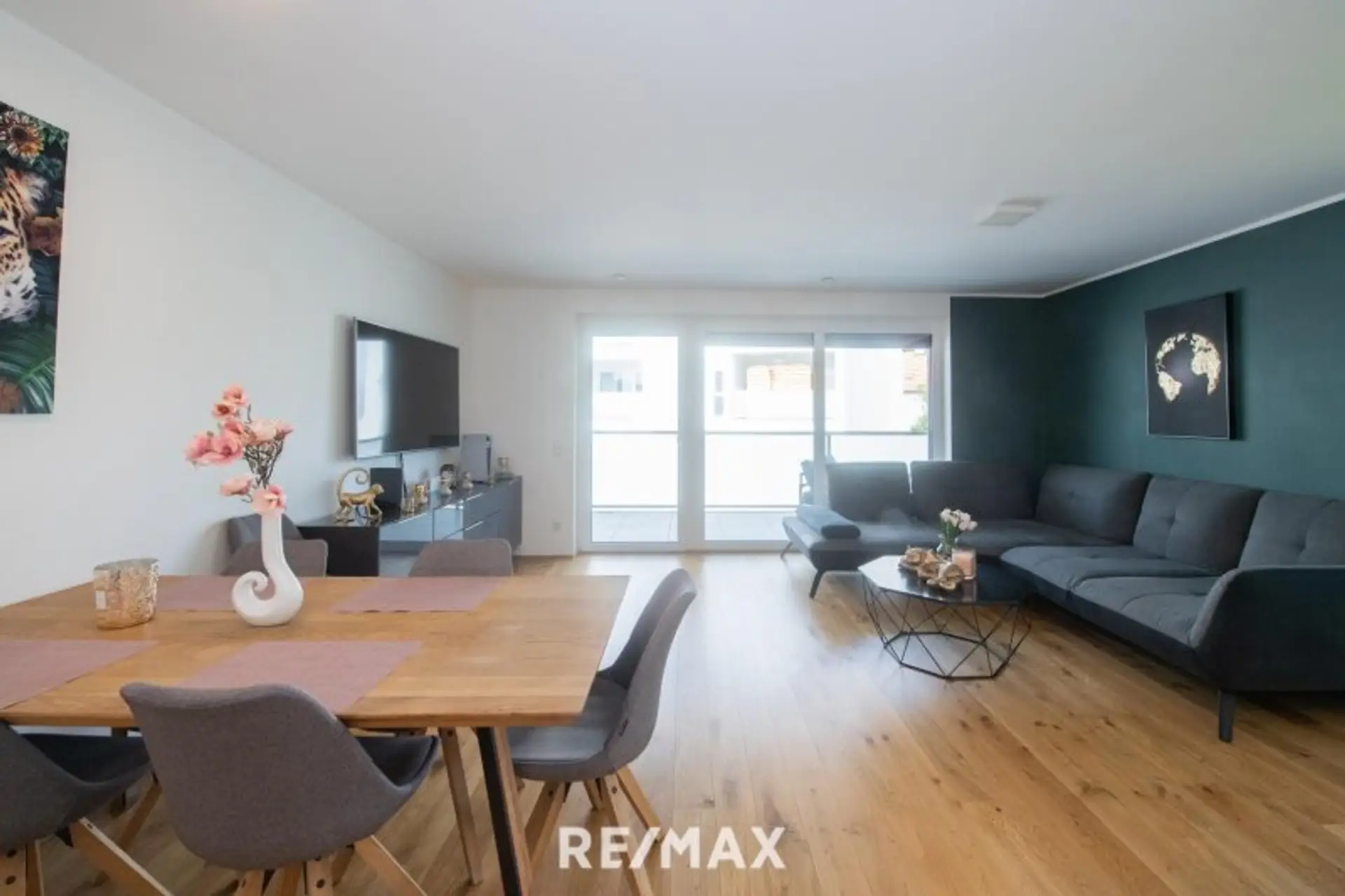 Großzügige bodentiefe Fensterfronten sorgen für lichtdurchflutete Wohnräume und schaffen ein harmonisches Zusammenspiel von Innen- und Außenbereich.