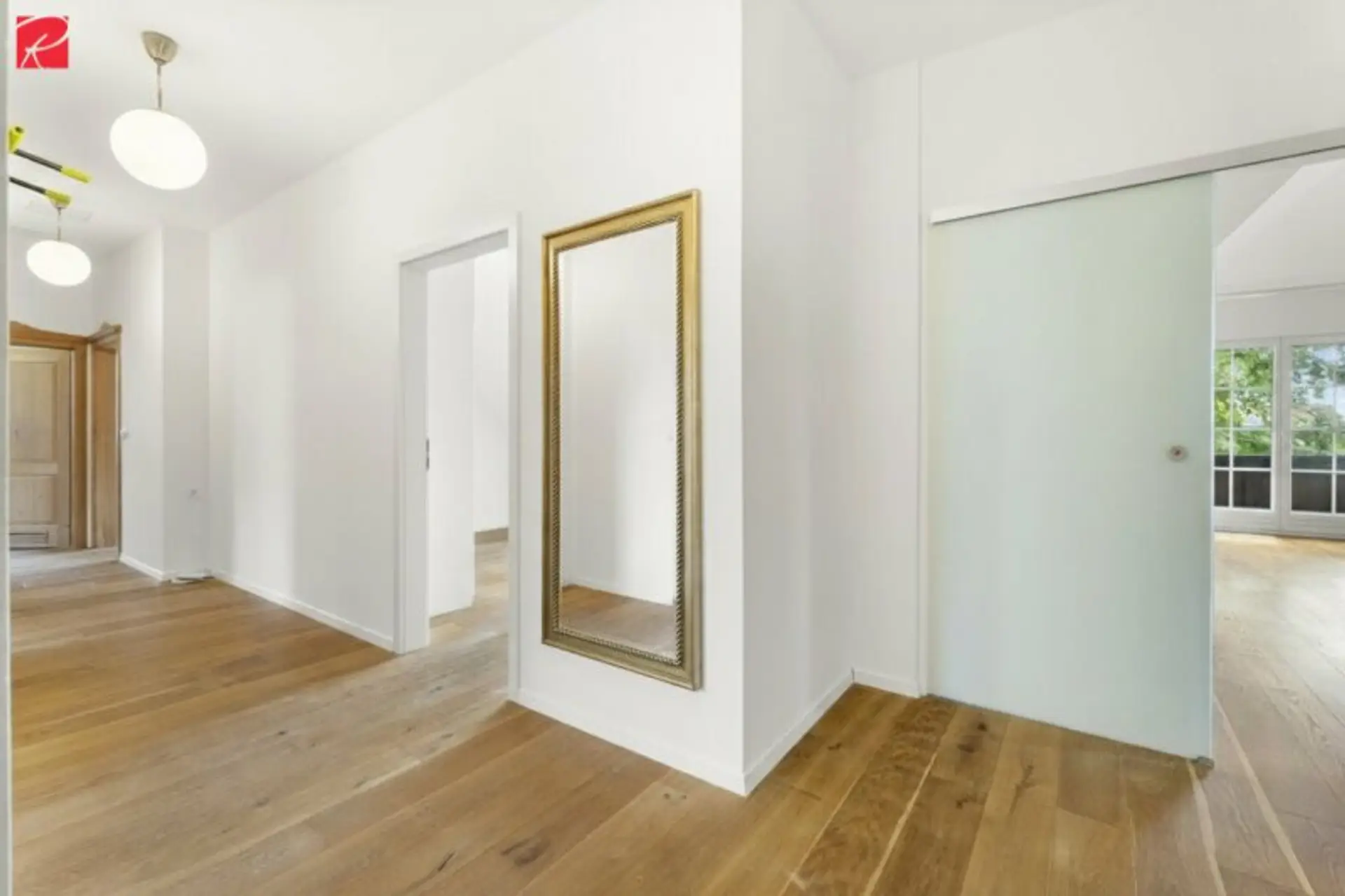 * Edler Parkettboden, moderne Fliesen & Bodenheizung