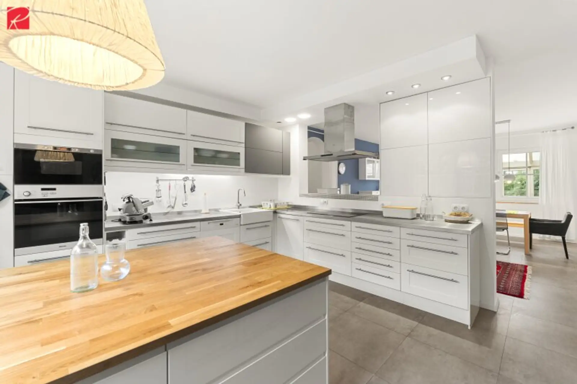 Schon beim Betreten offenbart sich die durchdachte Architektur dieser Immobilie. Großzügige Glasflächen und die Süd-West-Ausrichtung sorgen für eine außergewöhnliche Lichtdurchflutung im gesamten Wohnbereich. Die geräumige Küche erfüllt sämtliche Koch- und Backträume – ideal für gemeinsames Backen mit den Kindern oder gesellige Abende mit Freunden. Von hier aus gelangen Sie sowohl in die anliegende Speisekammer, als auch in den Keller und zu einer zweiten Gartentür – praktisch, funktional und familienfreundlich durchdacht! Der großzügige Essbereich, der in den südlich angrenzenden Wintergarten führt, bietet ausreichend Platz für einen großen Familientisch – der perfekte Mittelpunkt für gemeinsame Mahlzeiten, Feste und vielen Familien-Momenten! Das Wohnzimmer präsentiert sich privat und dennoch wunderbar offen – mit einer beeindruckenden Raumhöhe von 3,20 Metern.