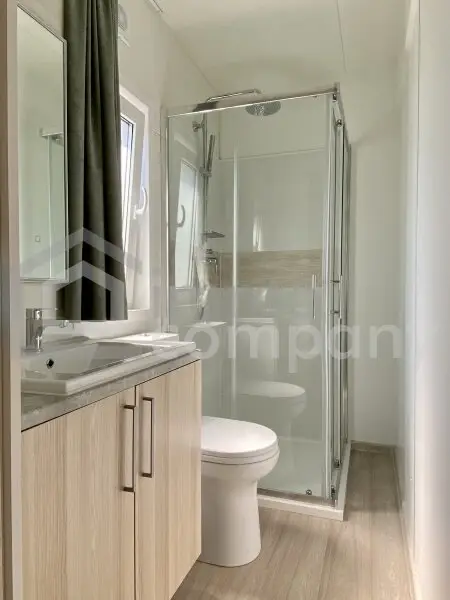 Das neue Mobilheim verfügt über - 2 Schlafzimmer - Wohnküche - Bad mit WC und Dusche. - neue Klimaanlage.