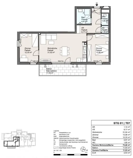 Top 07 | 3 Zimmer | ca. 74 m² + ca. 12 m² Freifläche