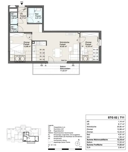 Stg. 2 Top 11 | 3 Zimmer | ca. 73 m² + ca. 12 m² Balkon