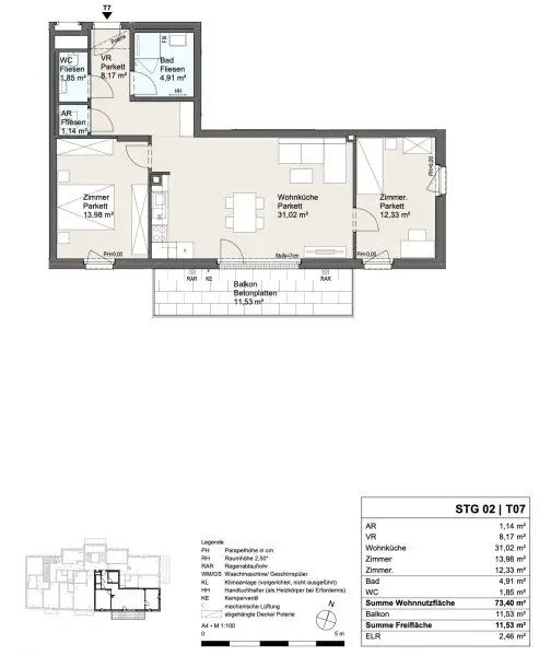 Stg. 2 Top 07 | 3 Zimmer | ca. 74 m² + ca. 12 m² Balkon