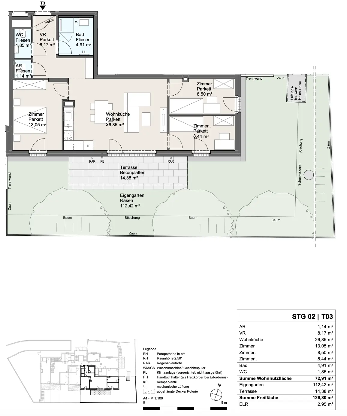 Stg. 2 Top 03 | 4 Zimmer | ca. 73m² + ca. 127m² Freifläche