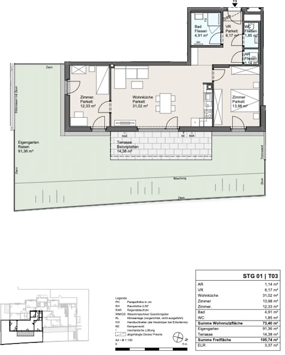 Top 03 I 3 Zimmer I ca. 74 m² + ca. 106 m² Freifläche