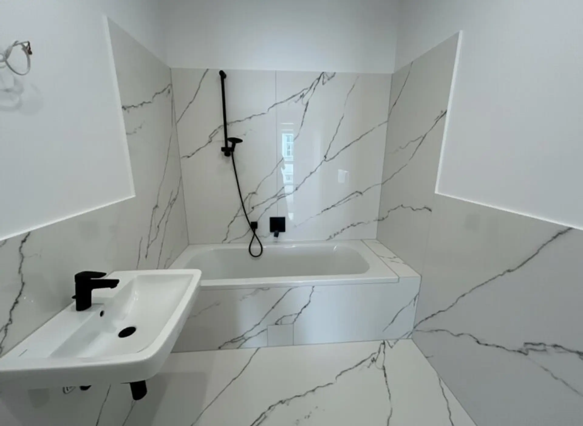 * Badezimmer mit Wanne, WC, Handwaschbecken, zusätzlicher Sprossenheizung, Waschmaschinenanschluss