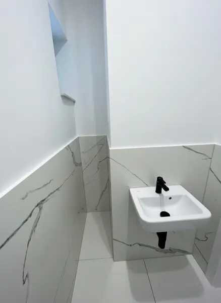 * Badezimmer mit Wanne, Handwaschbecken, zusätzlicher Sprossenheizung, Waschmaschinenanschluss