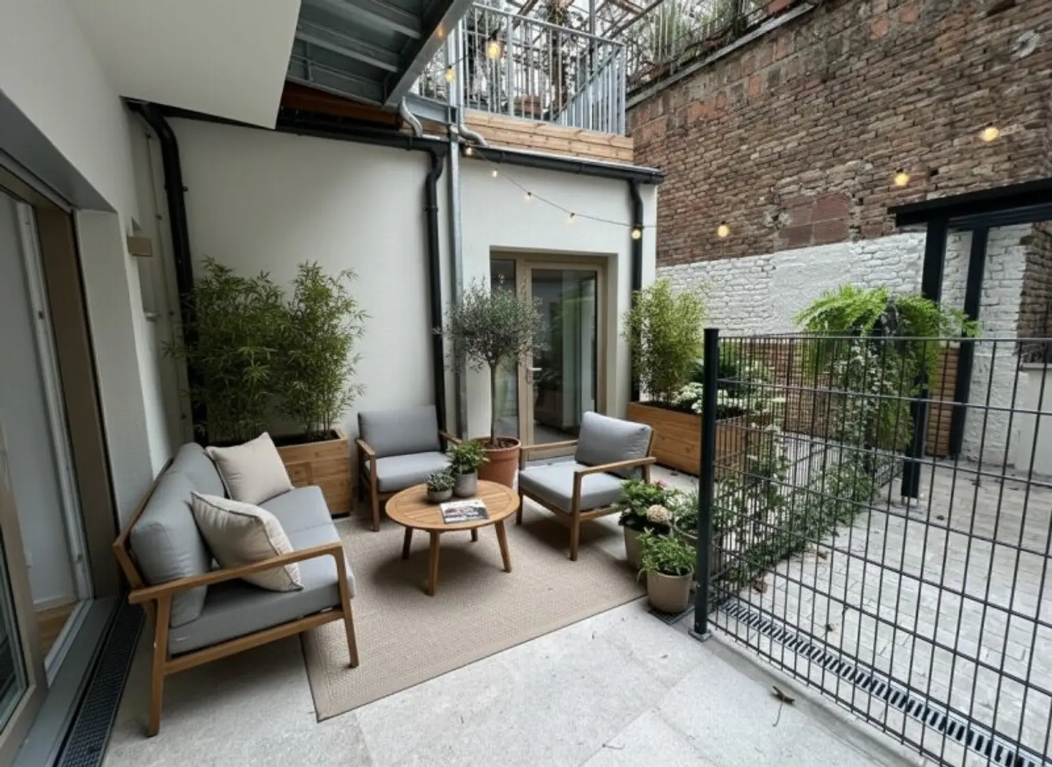 Hinweis: Zur besseren Veranschaulichung des Potenzials wurde die Terrasse virtuell eingerichtet. Die Originalaufnahmen der Terrasse sind ebenfalls beigefügt, sodass sowohl die Gestaltungsidee als auch der reale Zustand nachvollzogen werden können.