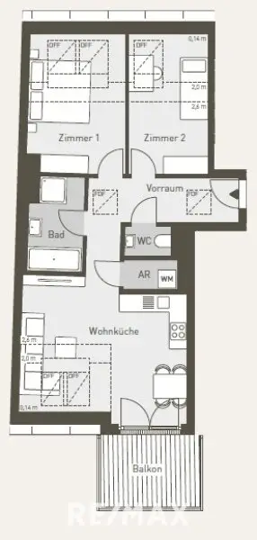 Die Wohnung besticht durch eine durchdachte Raumaufteilung mit einer offenen Wohnküche, die zum gemeinsamen Kochen und gemütlichen Beisammensein einlädt. Hochwertige Fliesen und edles Parkett schaffen eine warme, einladende Atmosphäre. Das Badezimmer ist mit einer Badewanne und einer separaten Dusche ausgestattet – ideal zum Entspannen nach einem langen Tag. Ein besonderes Highlight ist der sonnige Südbalkon, der Ihnen viel Platz für Erholung an der frischen Luft bietet.