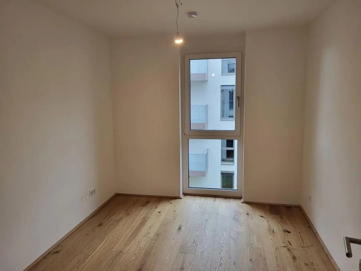 Die helle, freundliche Wohnung is mit Echtholz-Parkettböden ausgestattet, hat eineFußbodenheizung und ein schön ausgestattetes Bad mit Fliesen und hochwertigem Feinsteinzeug. Französische Fenster mit 3- fach Verglasung aus Alu Kunstoff mit funkbetriebenen Sonnenschutz sorgen für eine angenehme Atmosphäre.