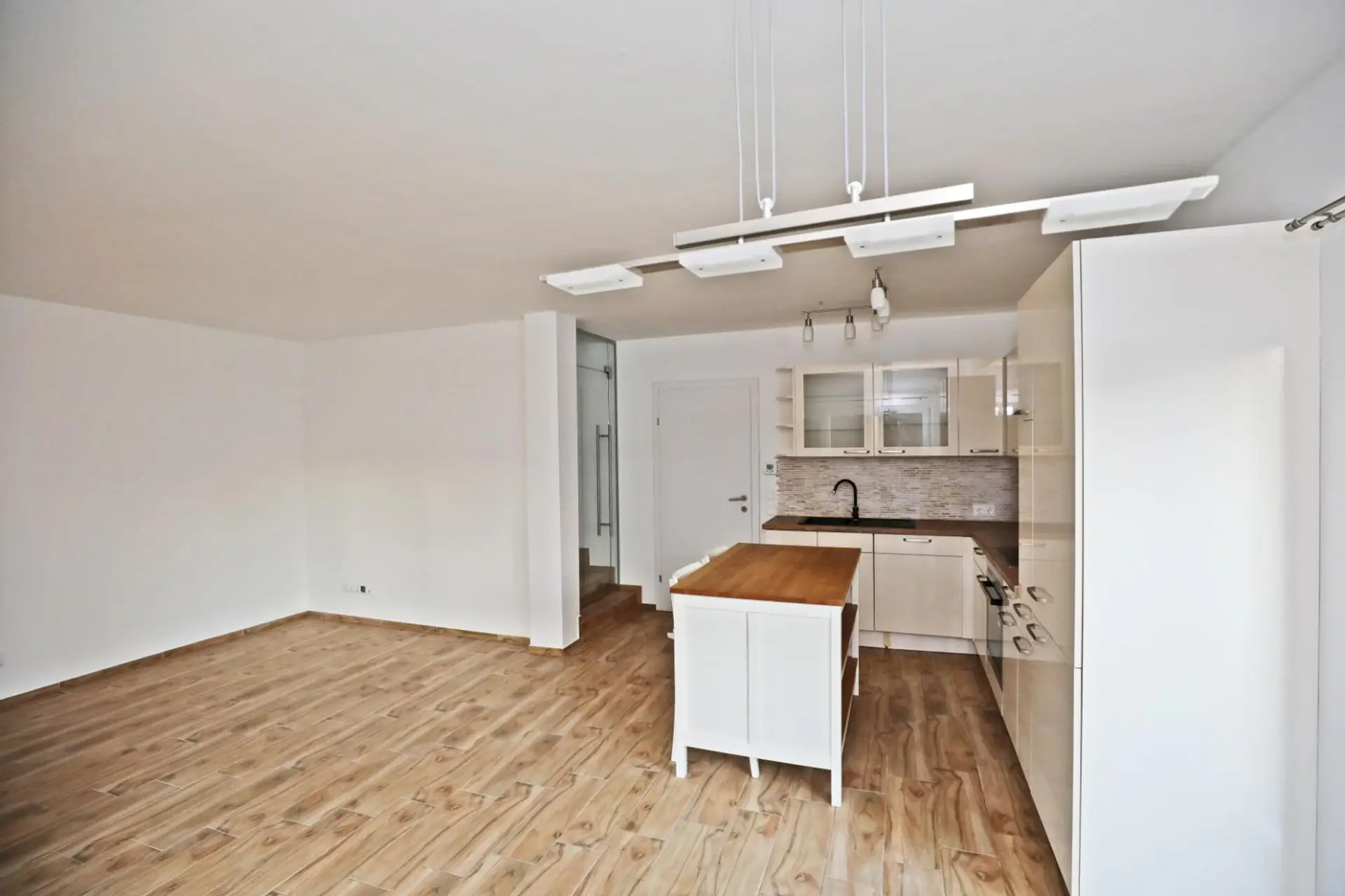 Im Erdgeschoss befinden sich ein offener, heller Wohn- und Essbereich mit hochwertiger Einbauküche, ein Technikraum, ein Abstellraum sowie ein separates WC.