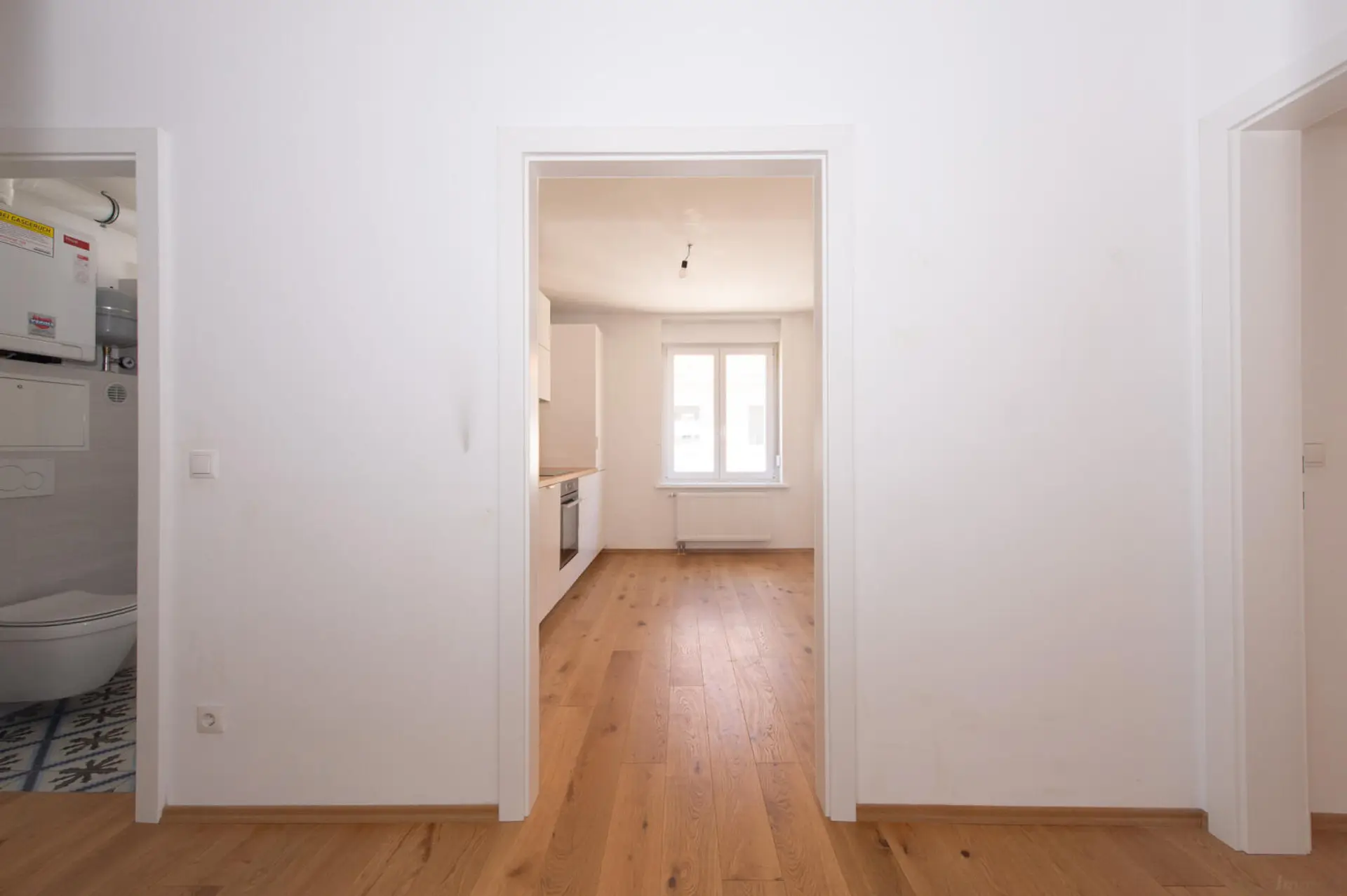 Die neu installierte Heizungsanlage sorgt für effiziente Wärme – die voraussichtlichen Heizkosten belaufen sich auf ca. € 50,- monatlich, je nach Verbrauch.