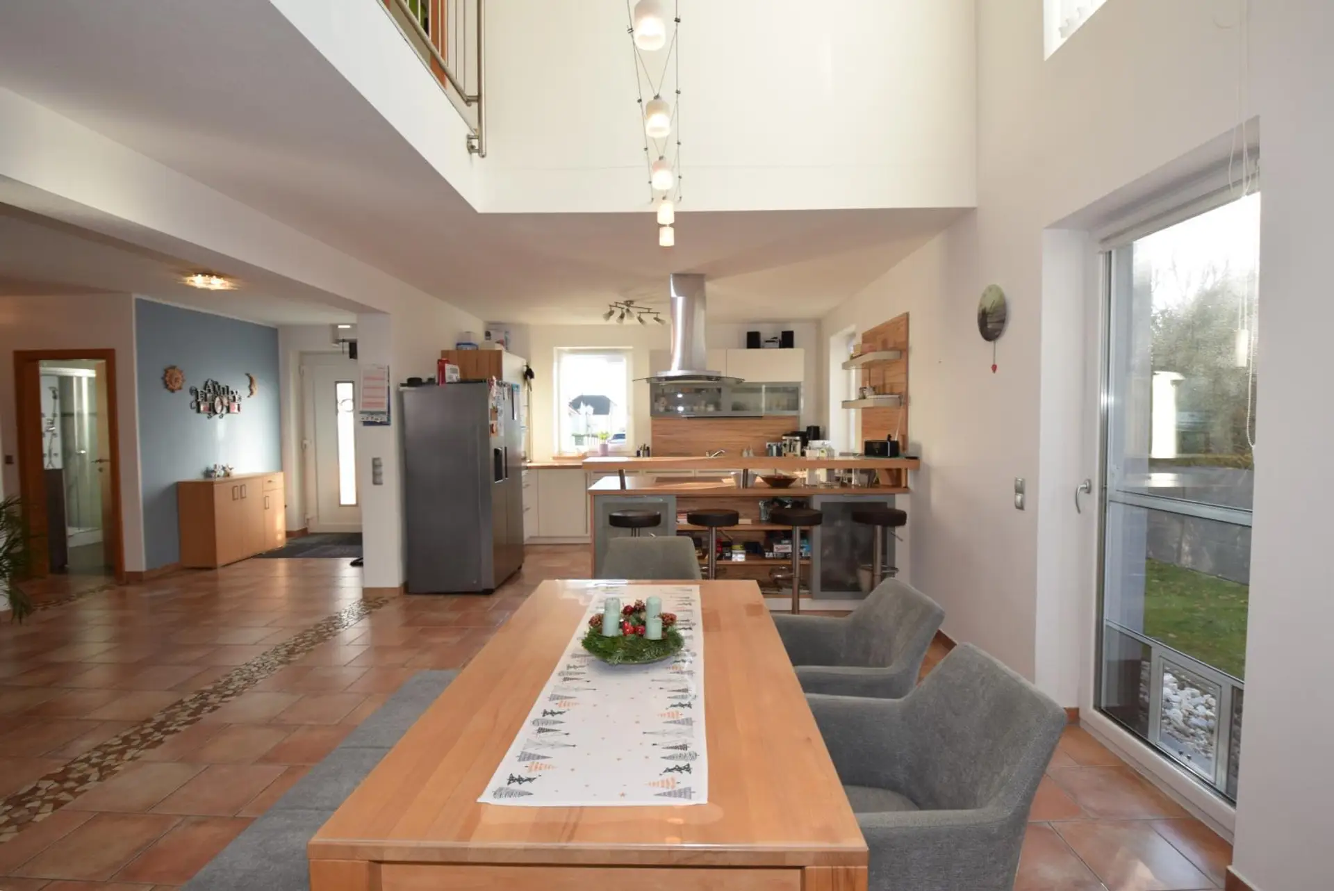 * offener Wohn-Essbereich mit Zugang zum Garten und Belichtung von drei Seiten