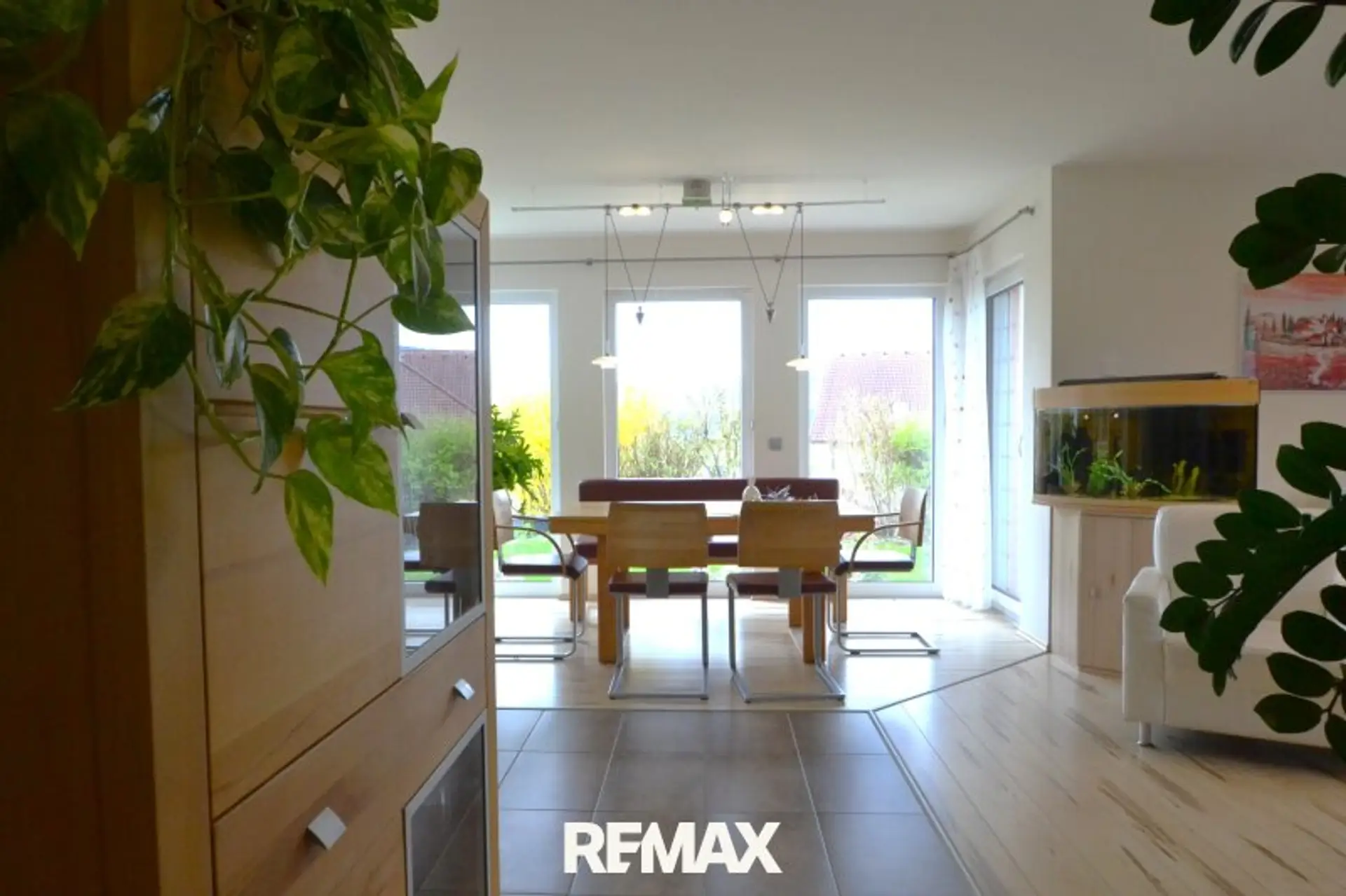 * offener Wohn-Essbereich mit Zugang zu Terrasse und Garten - Belichtung von drei Seiten