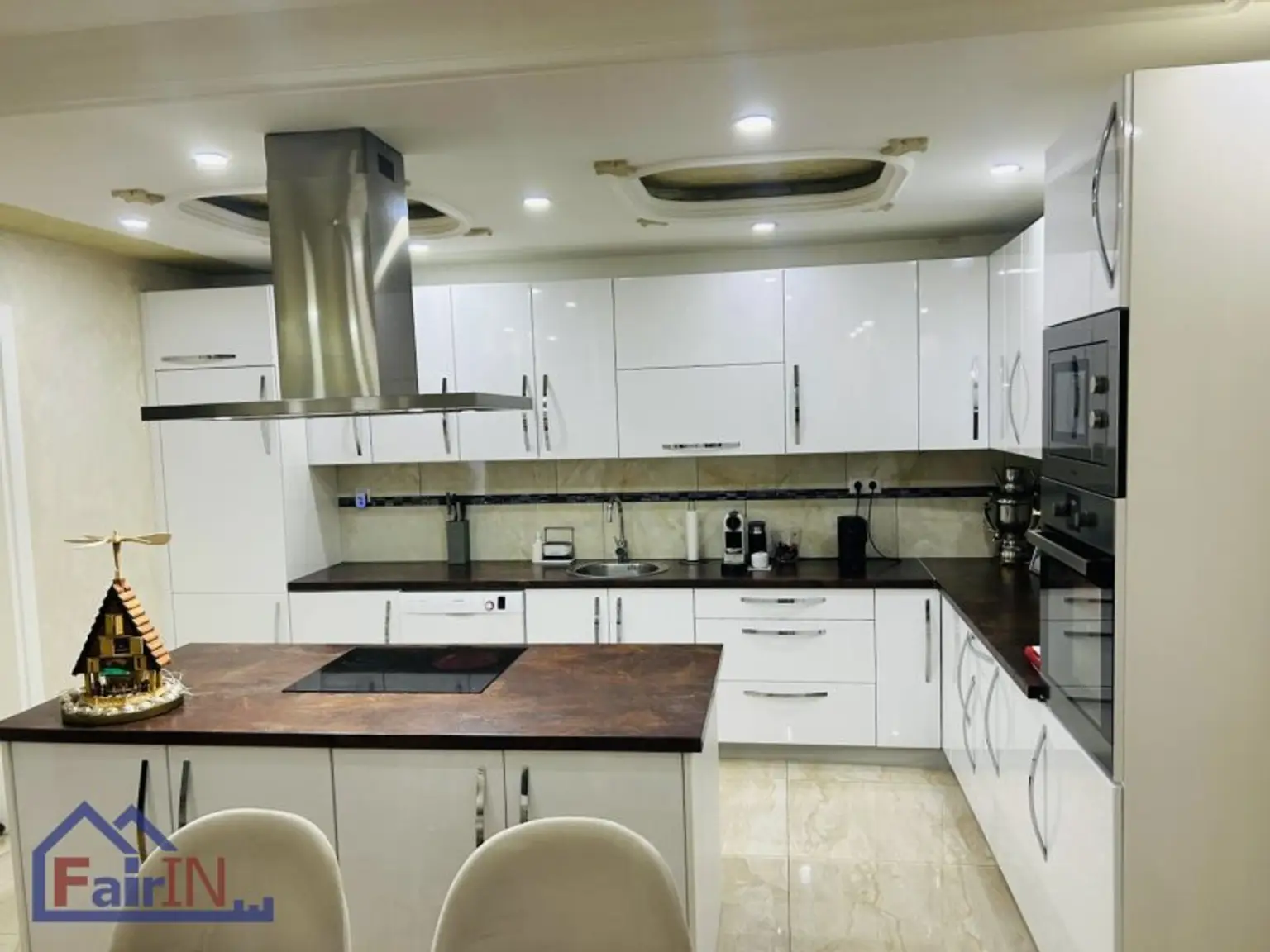 Die Ausstattung der Wohnung lässt keine Wünsche offen. Hochwertige Fliesen und edles Parkett verleihen den Räumen einen eleganten Charme. Die moderne Einbauküche ist funktional und ideal für Hobbyköche, während die Badezimmer mit Fenster, Badewanne und Dusche sowohl praktisch als auch stilvoll gestaltet sind. Zudem sorgen drei WCs für zusätzlichen Komfort, insbesondere in einem Mehrfamilienhaus.