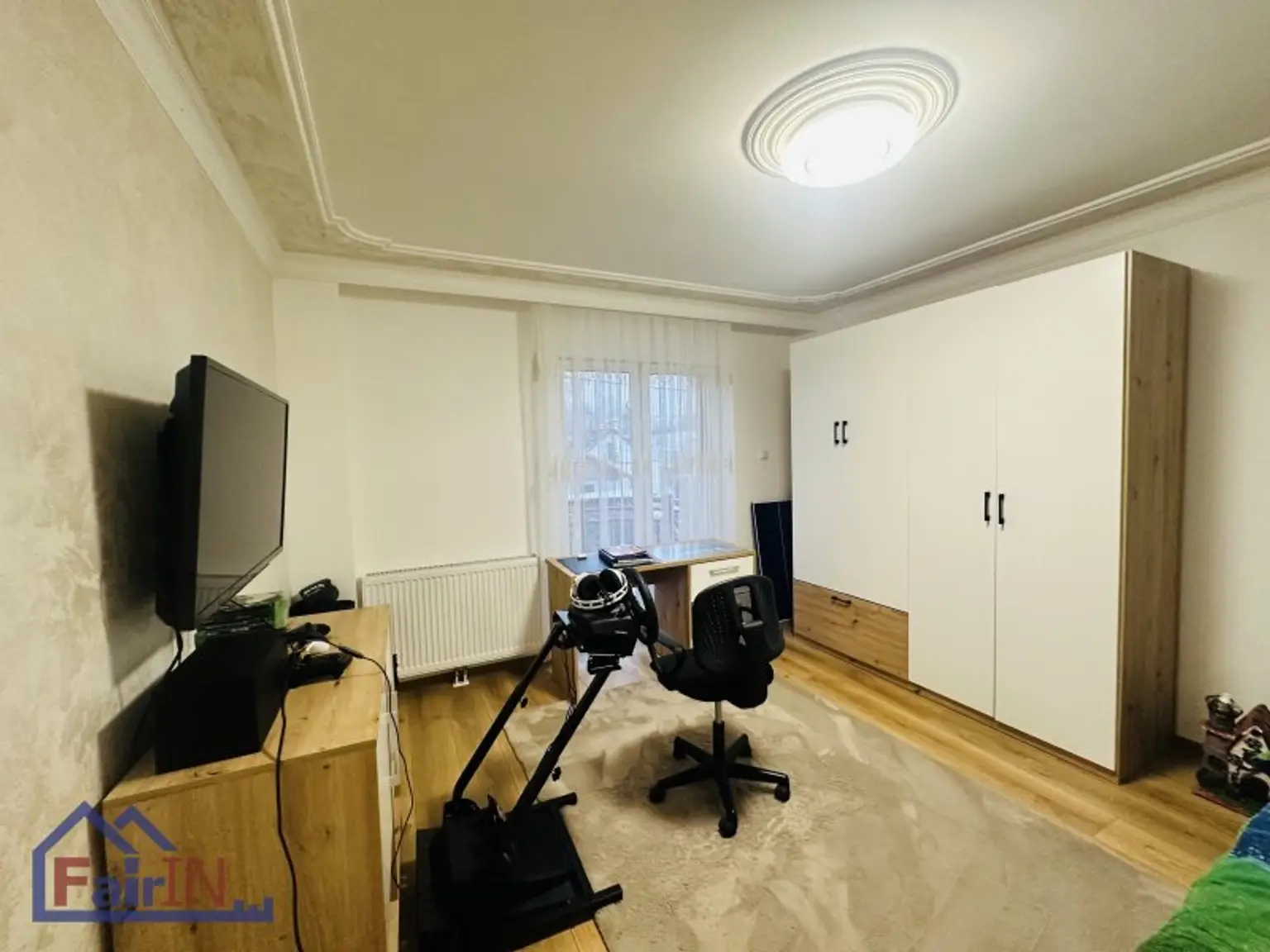 Die Etagenheizung mit Gas sorgt für eine angenehme Wärme und ein behagliches Wohnklima, während große Fenster für viel Tageslicht sorgen und den Blick ins Grüne freigeben.