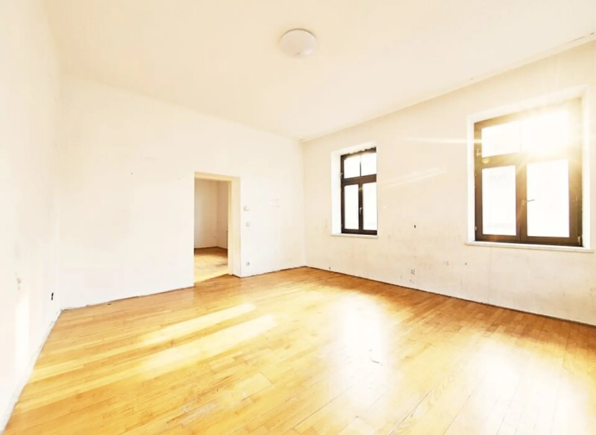 Derzeit besteht das Objekt aus zwei nebeneinanderliegenden getrennten Wohnungen, die sich im Zuge einer Sanierung zu einer großzügigen ca. 93 m² großen Eigentumswohnung verbinden lassen – eine seltene Gelegenheit für alle, die ihren Wohntraum individuell gestalten möchten.