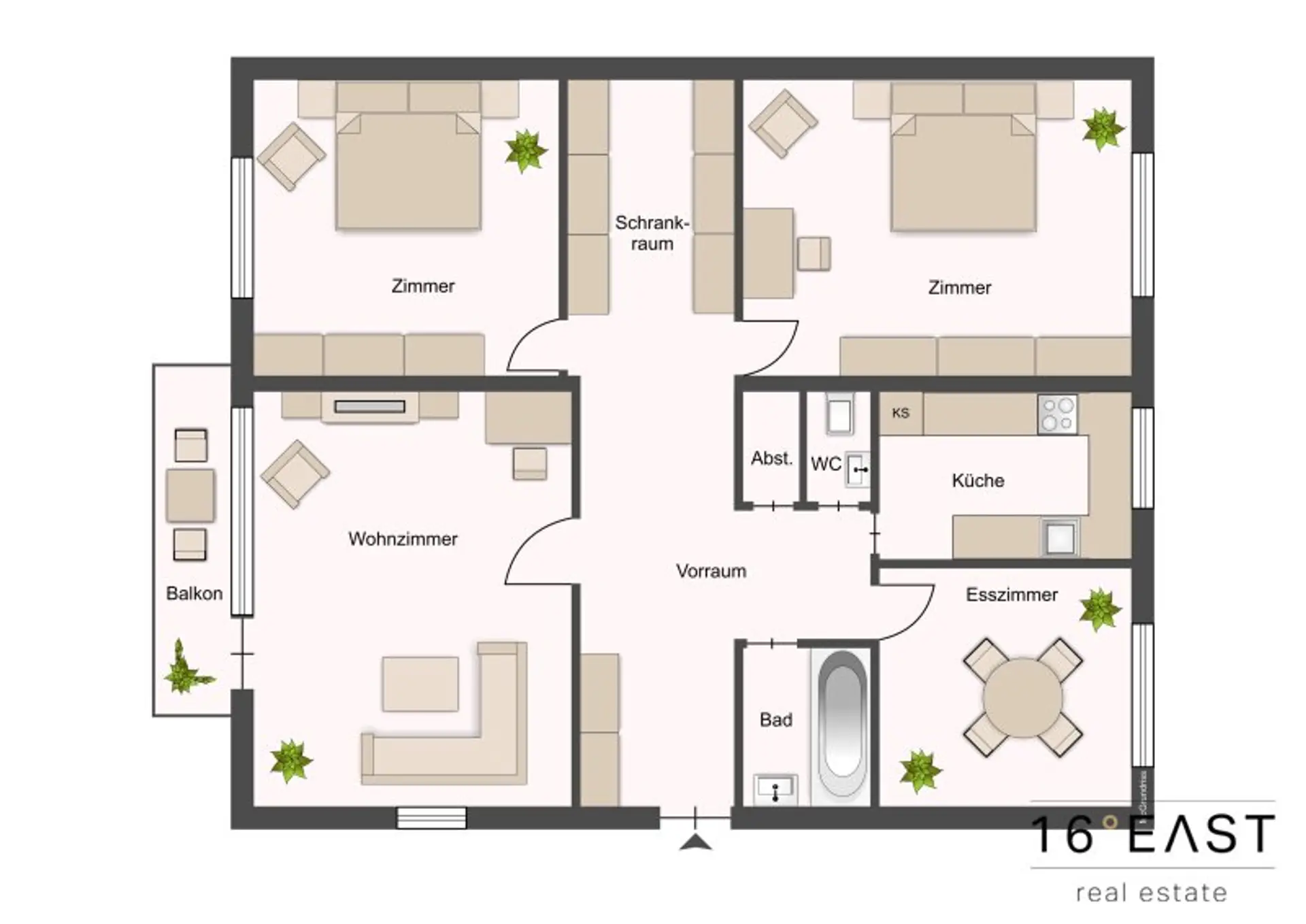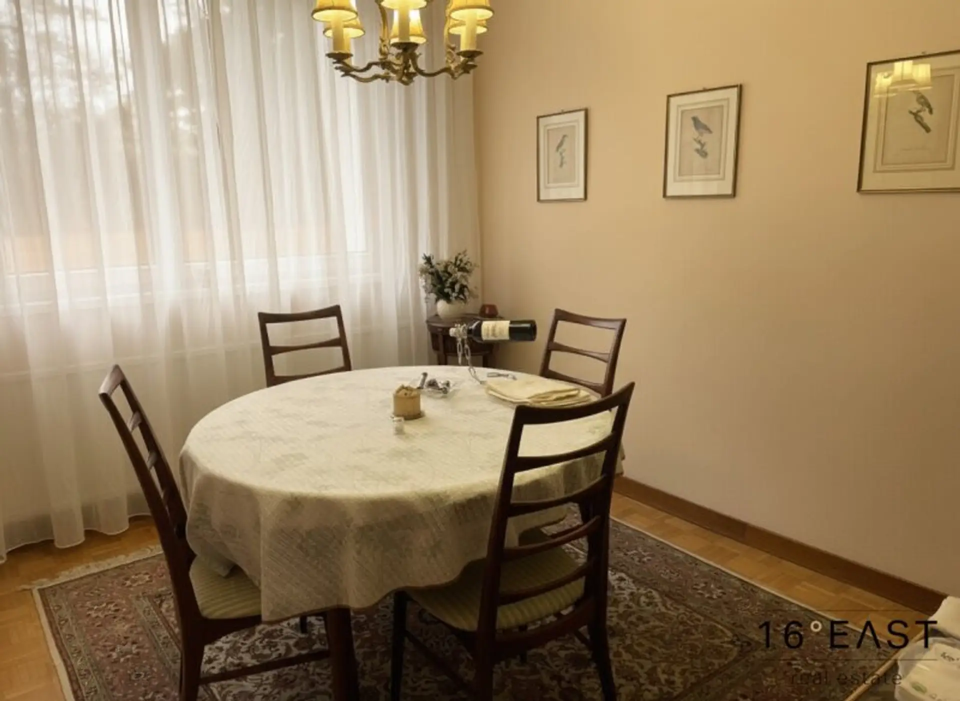 Die Wohnung befindet sich im letzten Stockwerk und bietet ca. 106 m² Wohnfläche, aufgeteilt auf 3,5 Zimmer. Der Balkon lädt zum Entspannen ins Grüne ein.