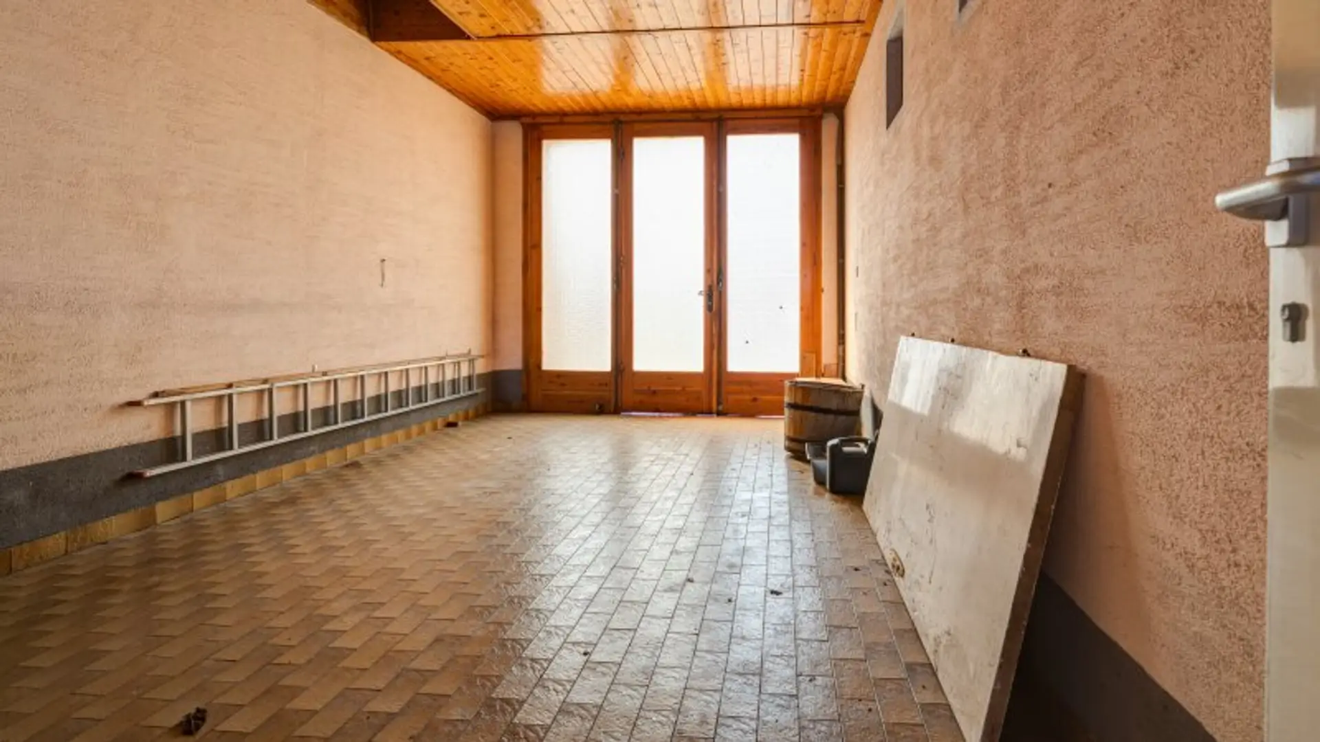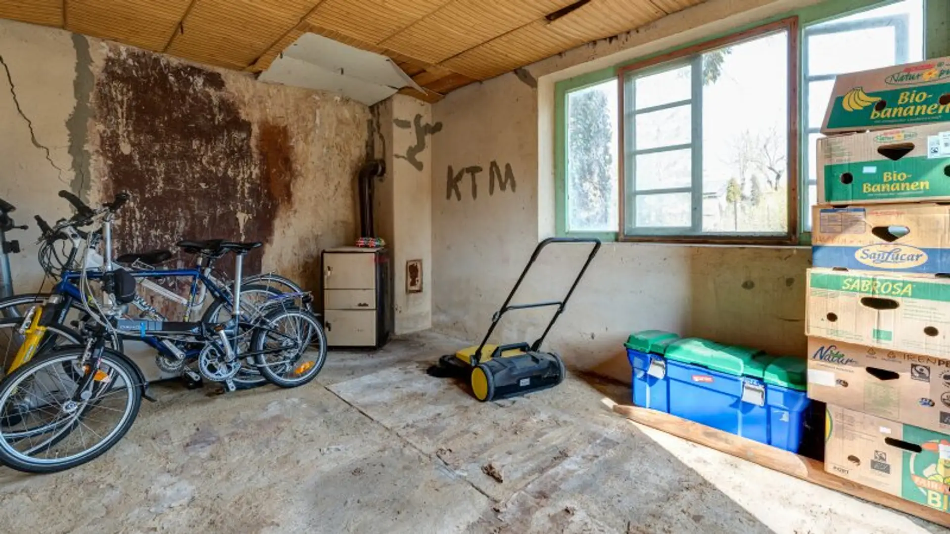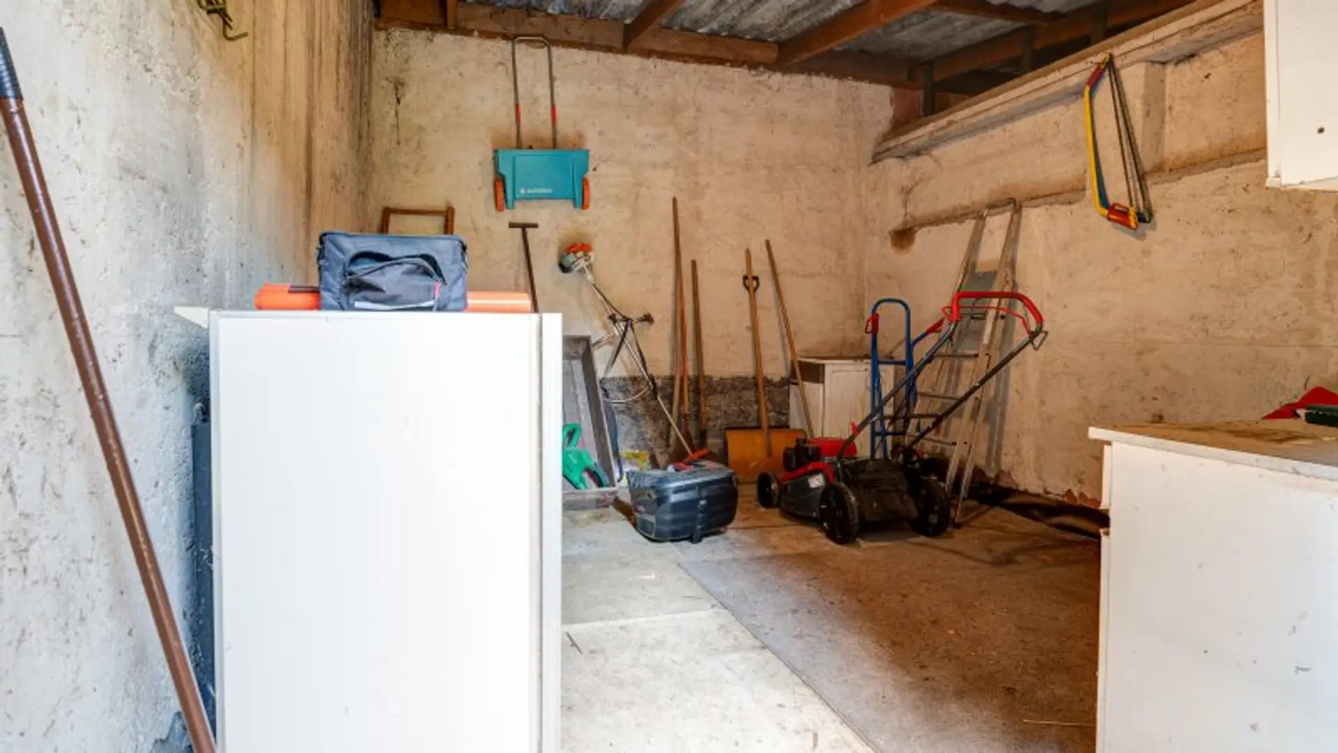 Ein Nebengebäude (Schuppen) mit rund 32–35 m² bietet ausreichend Platz für Gartengeräte, Werkstatt oder auch eine mögliche Outdoor-Küche. Der Schuppen wurde geteilt und ist aktuell über zwei separate Zugänge begehbar.