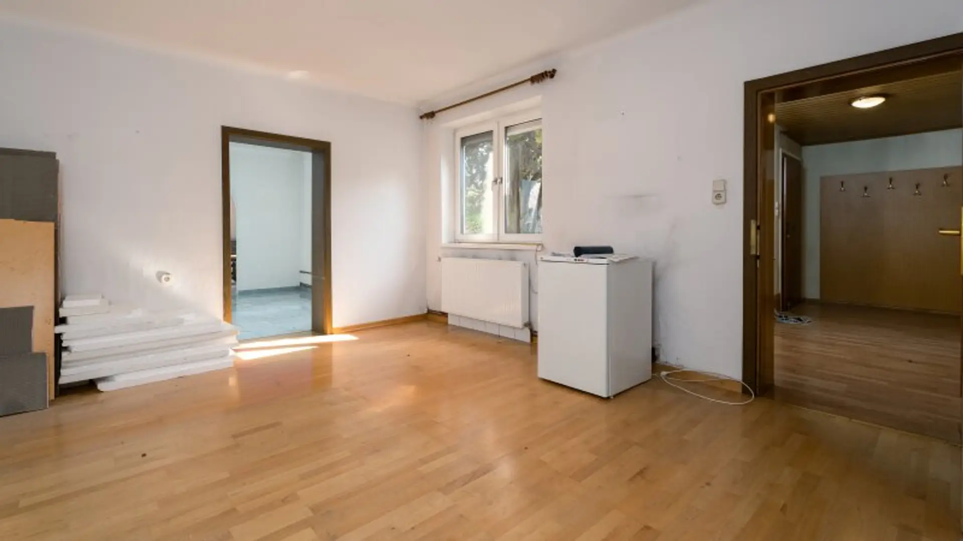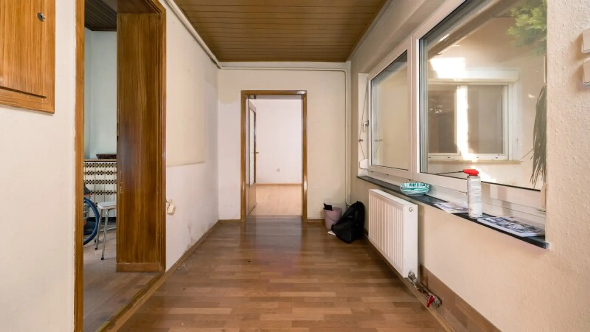 Der Hintertrakt, erreichbar ebenfalls vom Vorraum, führt zu drei weiteren Zimmern. Diese sind hintereinander angeordnet und werden nicht über einen separaten Gang erschlossen.