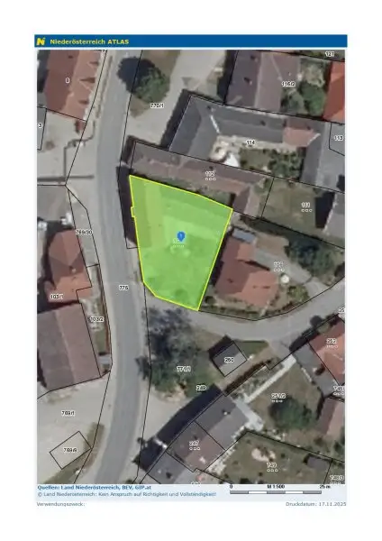 Die Flächenwidmung des Grundstückes lautet Bauland-Agrar, es gibt keinen Bebauungsplan. Das Grundstück ist bereits im Grenzkataster eingetragen.