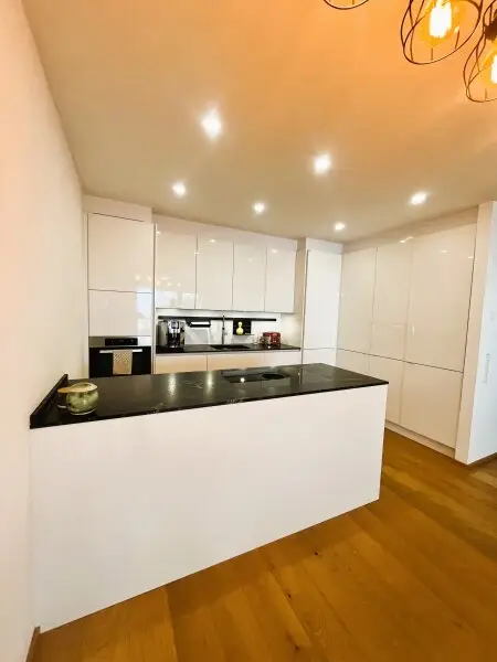 Das Mietobjekt überzeugt neben einer modernen Miele-Küche mit stilvoller Natursteinplatte durch hochwertige Eichen-Echtholzparkettböden und elektrischen Sonnenschutz auf allen Fenstern. Das elegant eingerichtete Badezimmer bietet mit einer modernen Infinity Dusche mit Regenbrause eine kleine Wellness-Oase in den eigenen vier Wänden. Weiterer Pluspunkt: Man gelangt von allen Schlafzimmern sowie vom Wohn-/Essbereich auf den ca. 21 m² großen, überdachten West-Balkon und kann so auch bei Regenwetter die herrliche Aussicht auf die umliegende Bergwelt genießen. _Luxus pur!_