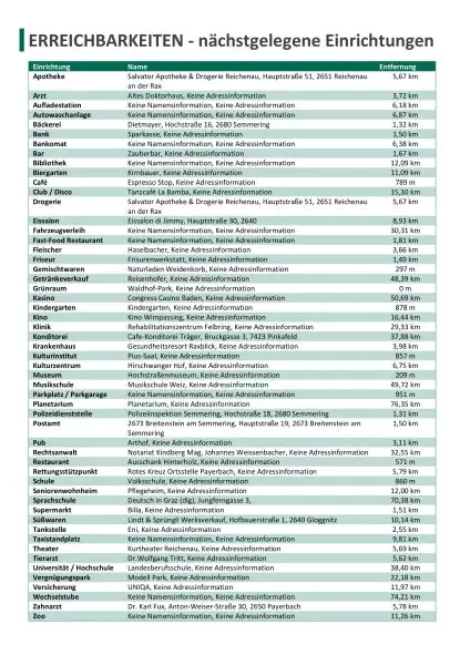 In der Gemeinde Semmering finden Sie Einkaufsmöglichkeiten des täglichen Bedarfs, einen Arzt, Bankomat, Gastronomiebetriebe sowie einen Kindergarten.