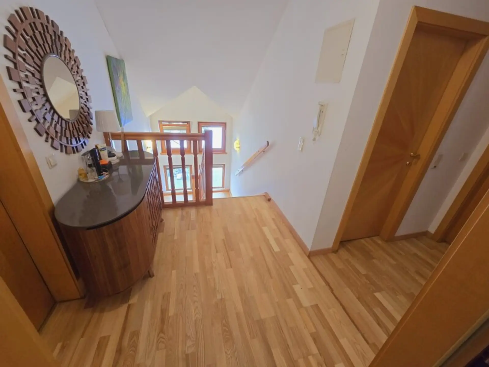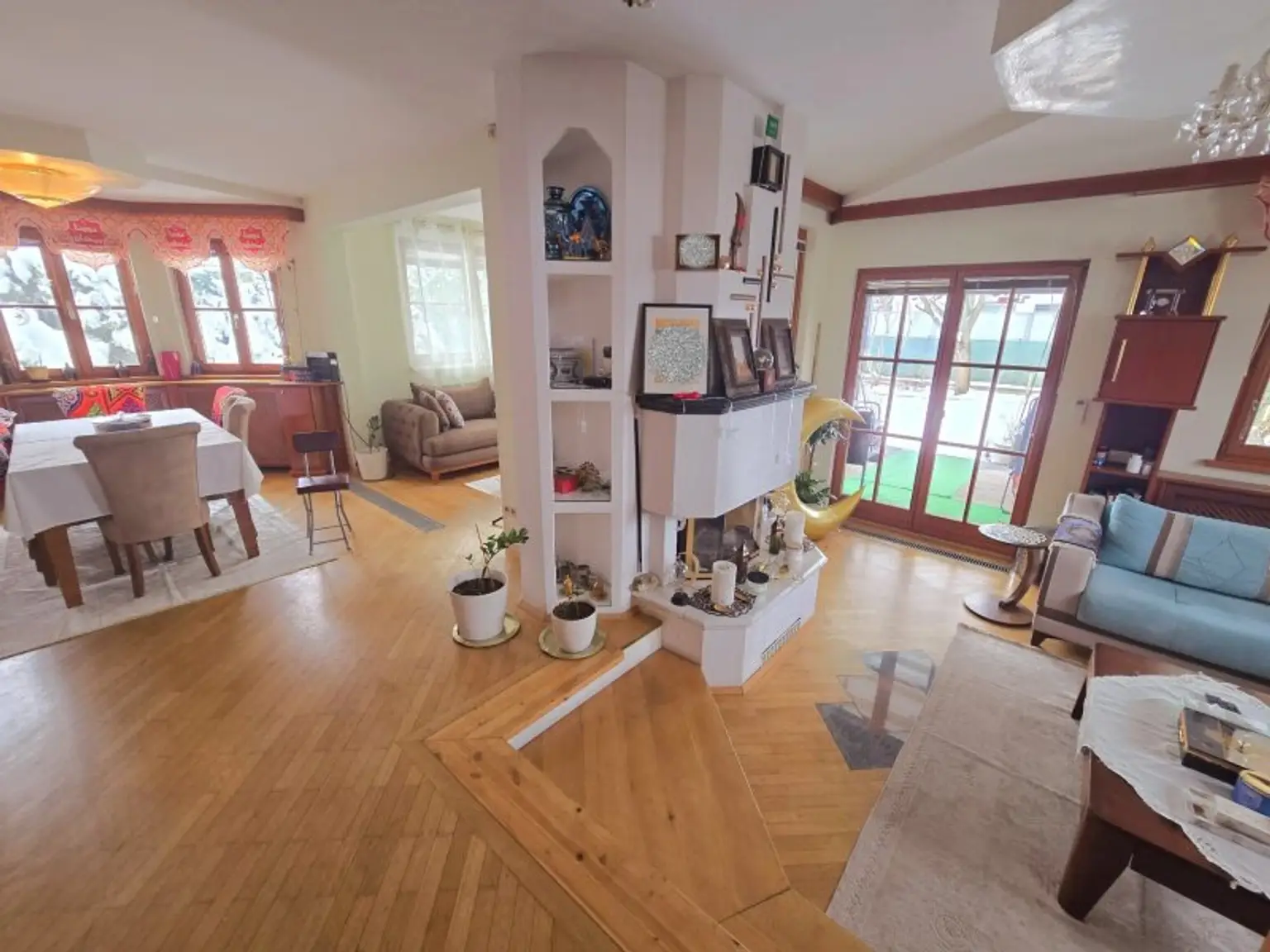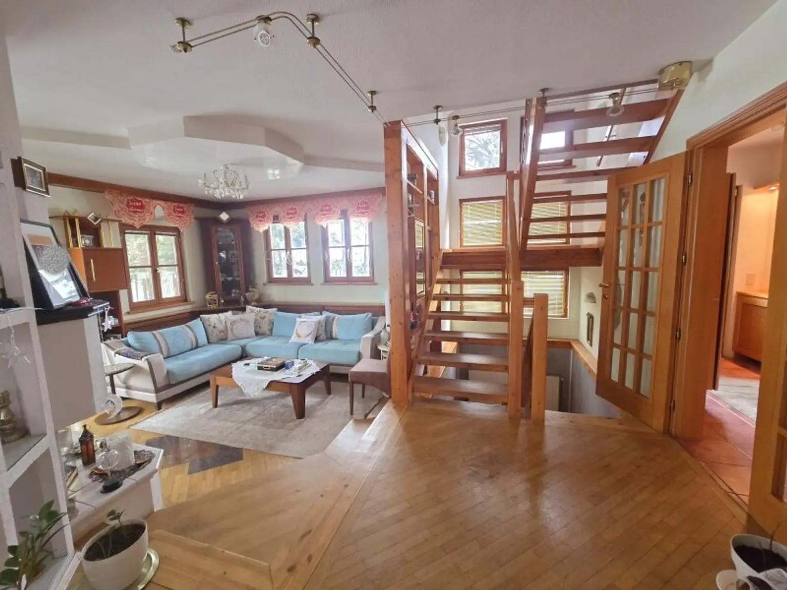 * Böden: Hochwertiger Parkett und Fliesen.