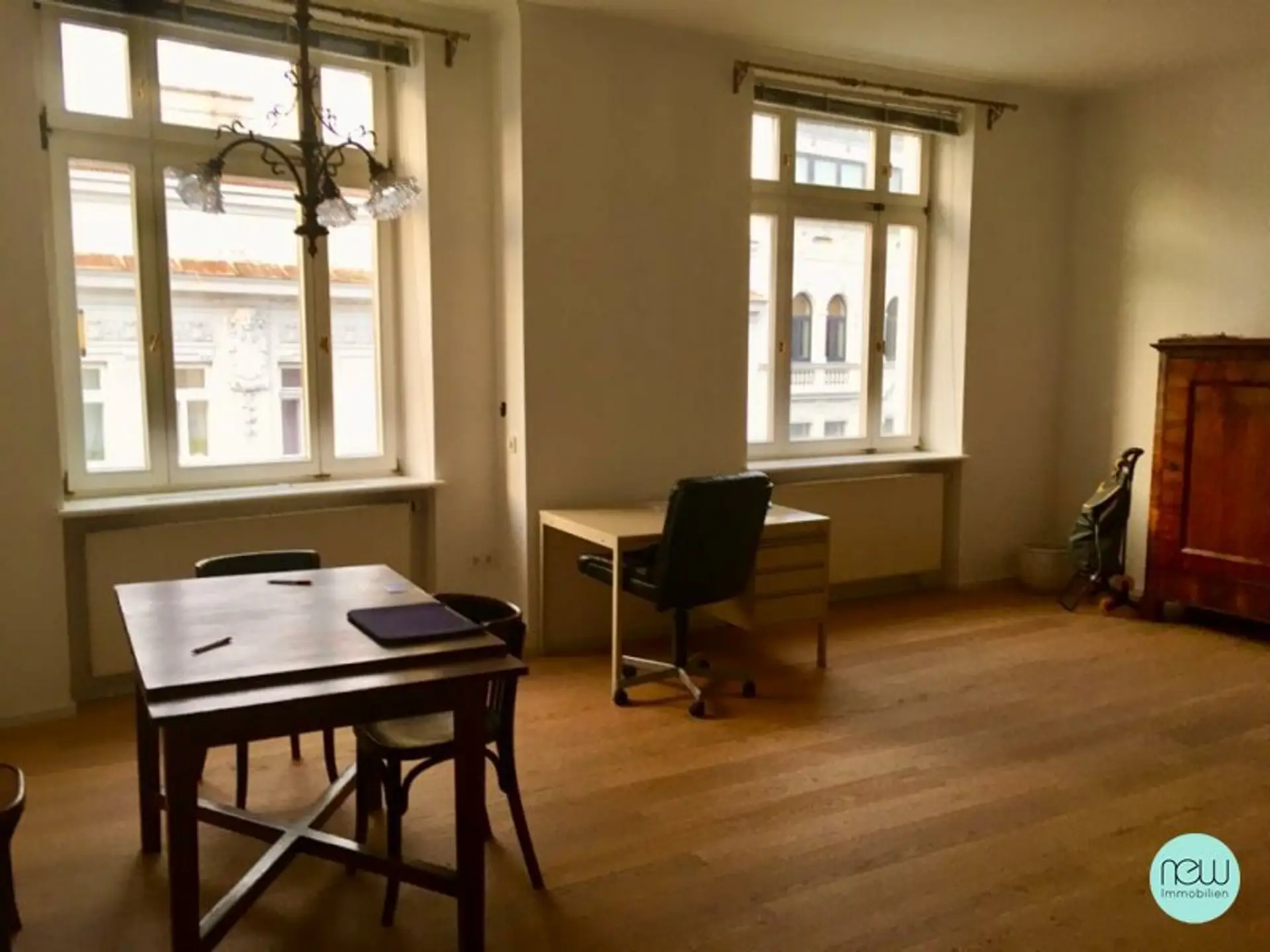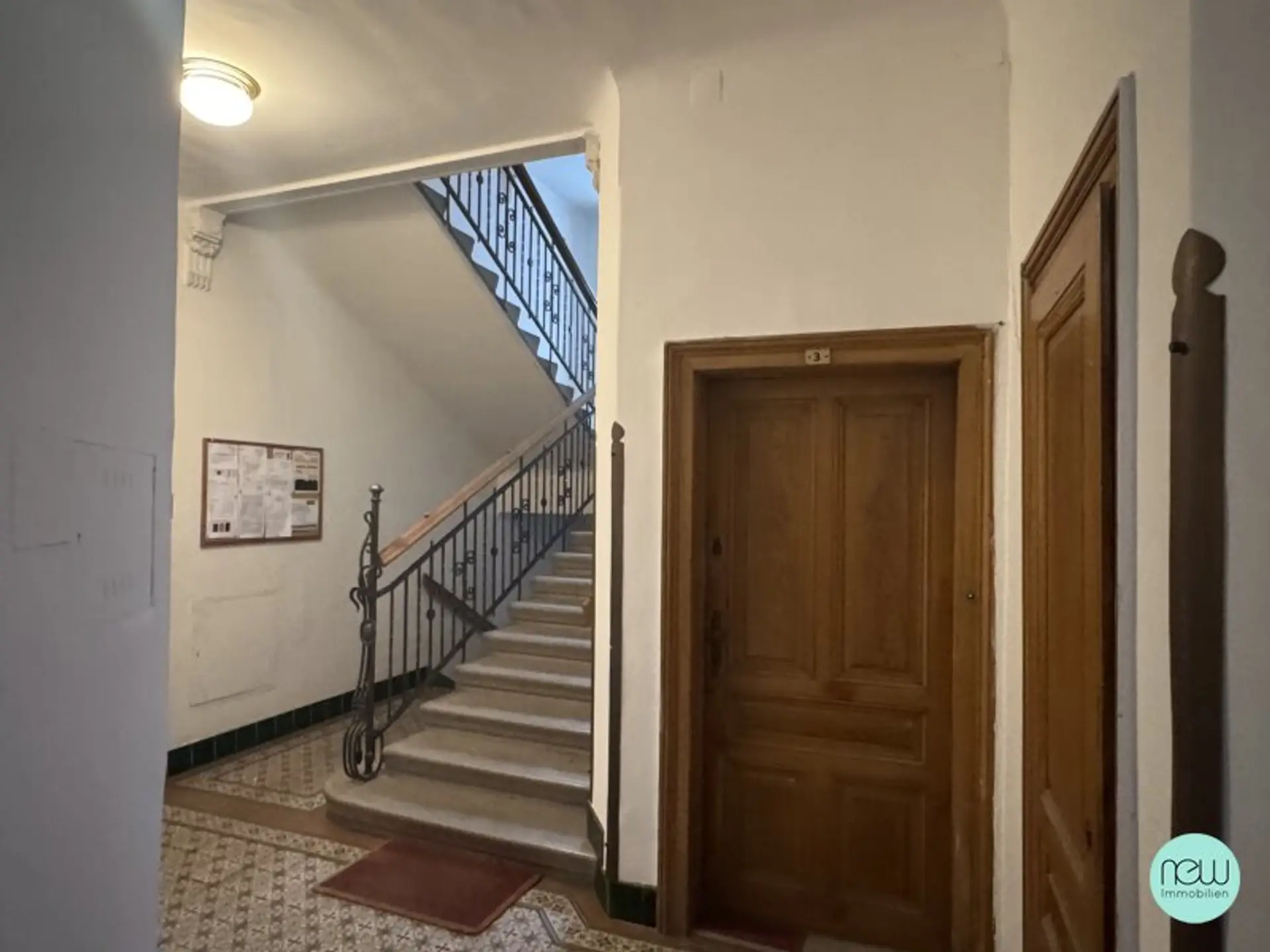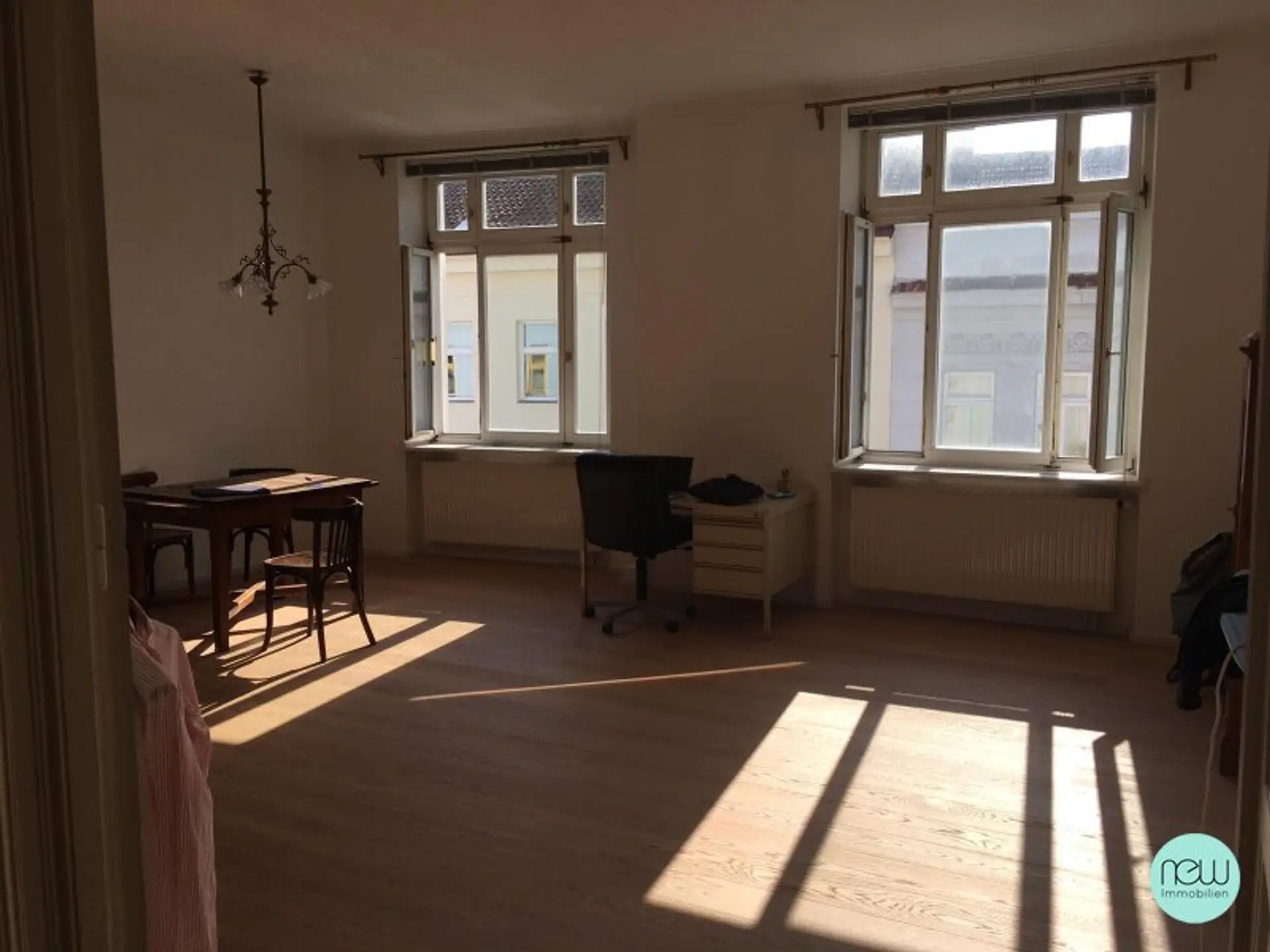 Die geräumige, helle Wohnung liegt im 2. Stock (ohne Lift) und bietet eine angenehme, besondere Atmosphäre. Sie eignet sich ideal, um Wohnen und Arbeiten zu kombinieren. Das Objekt befindet sich in einem schönen, eleganten Jugendstil-Stadthaus. Aktuell verfügt die Wohnung über zwei Zimmer; das Wohnzimmer war ursprünglich geteilt und kann bei Bedarf wieder in zwei Räume unterteilt werden. Die Wohnung ist noch bis zum Sommer vermietet.