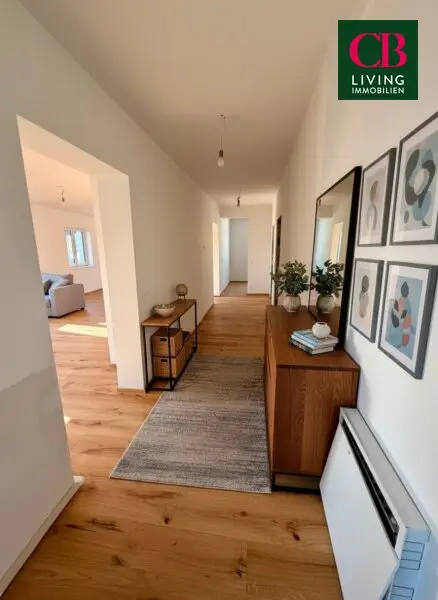 Im ersten Stock befinden sich der Wohn / Essbereich mit traumhaften Blick Richtung Stift und Wien., Küche, Abstellraum, Gäste WC.
