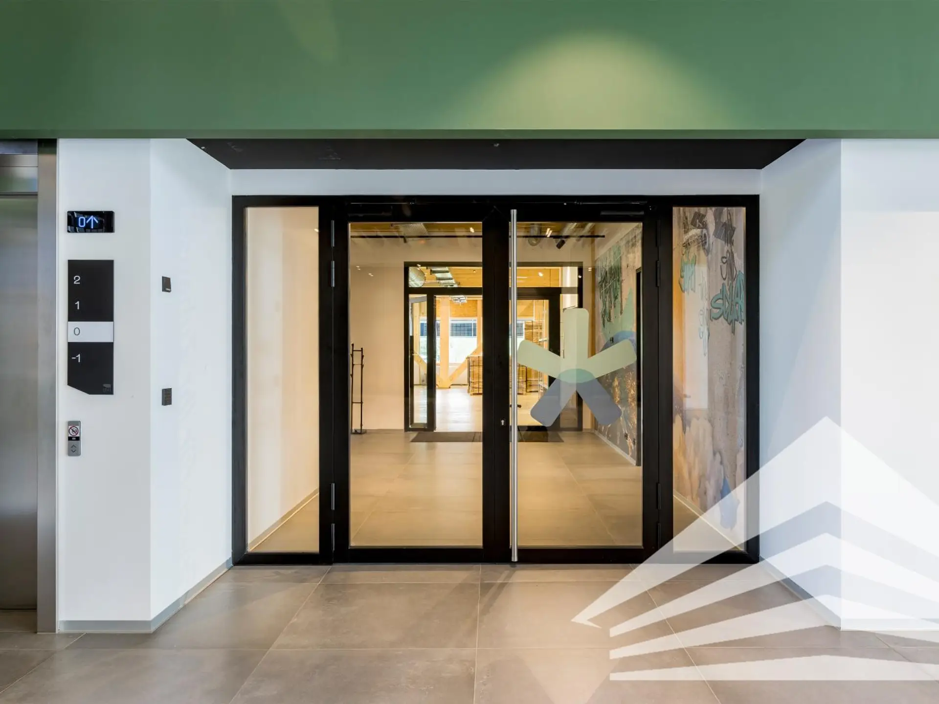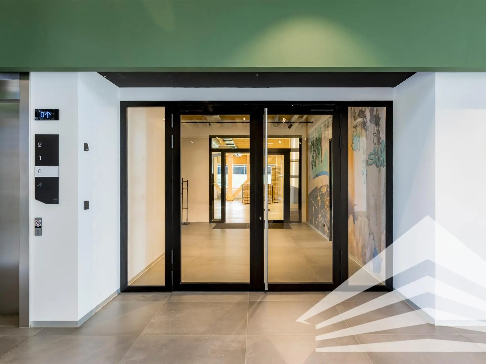 Vom zentralen Empfangsbereich des Gebäudes betritt man die abgetrennte Mietfläche mit einem ca. 50 m² großen Eingangsbereich welcher auch als Schauraum geeignet ist.