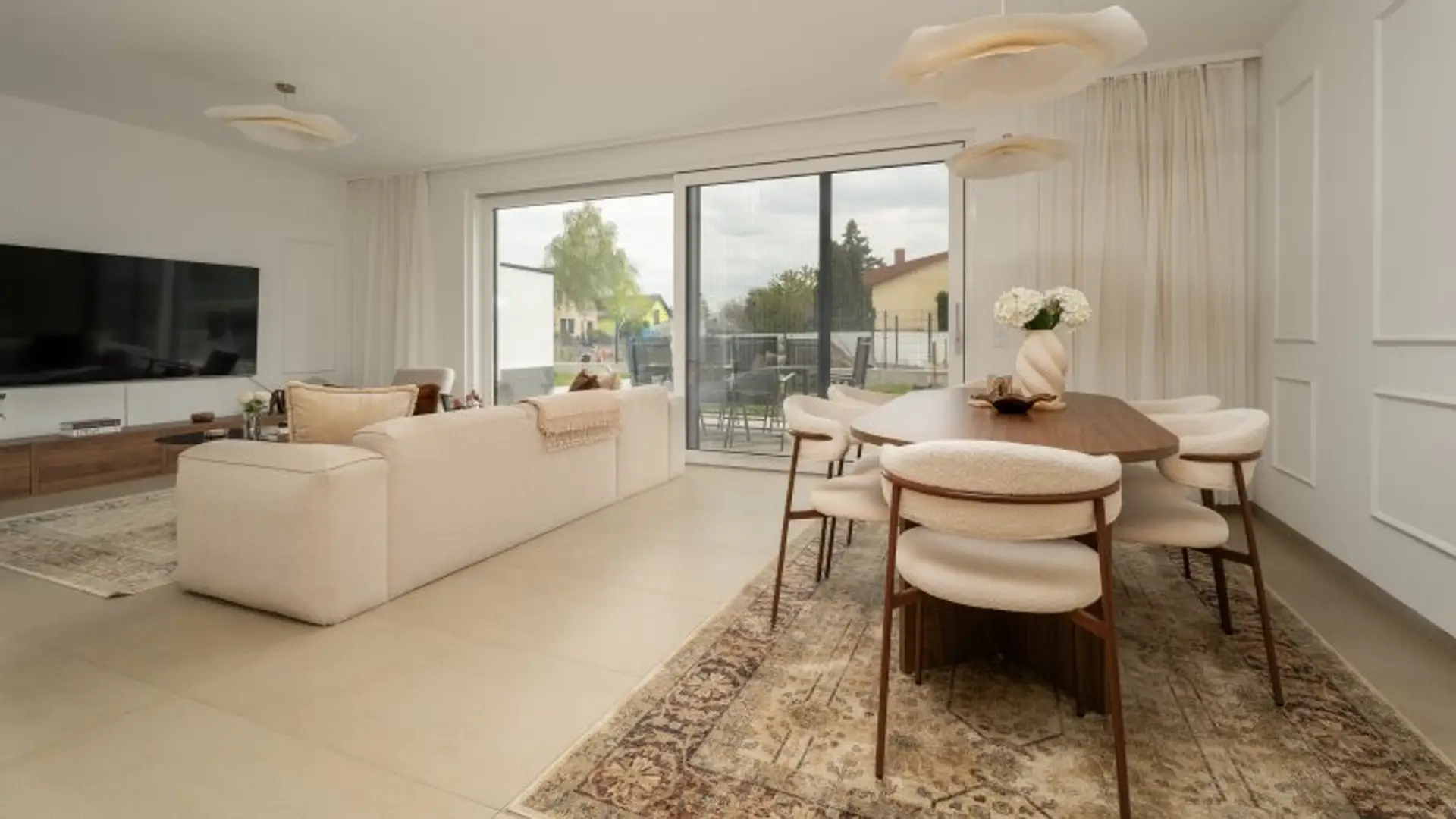 Im Erdgeschoß angekommen, erwartet Sie ein großzügiger Vorraum, linkerhand befindet das WC mit Handwaschbecken und Dusche. Weiter geht es in den großzügigen Wohn-Essbereich des Objektes, der ebenso mit einem Kamin ausgestattet ist. Der Wohn-Essbereich bietet genug Platz um mit Ihren liebsten Zeit zu verbringen. Eine Großzügige "Hebe-Schiebe Türe" bieten die Möglichkeit über die große Terrasse zum großzügigen Garten zu gelangen.