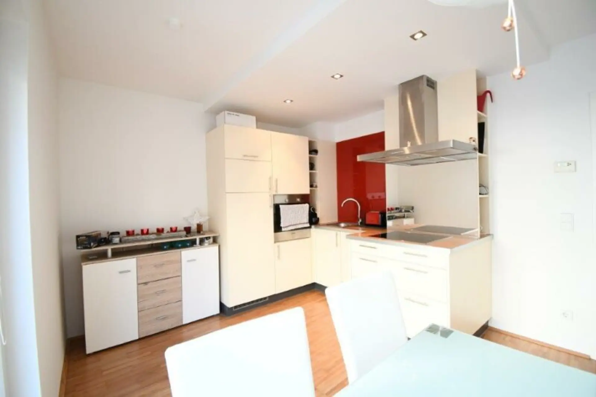 -) Wohnküche mit frz. Balkon und gut ausgestatteter Küche (Herd inkl. Dunstabzug, Geschirrspüler