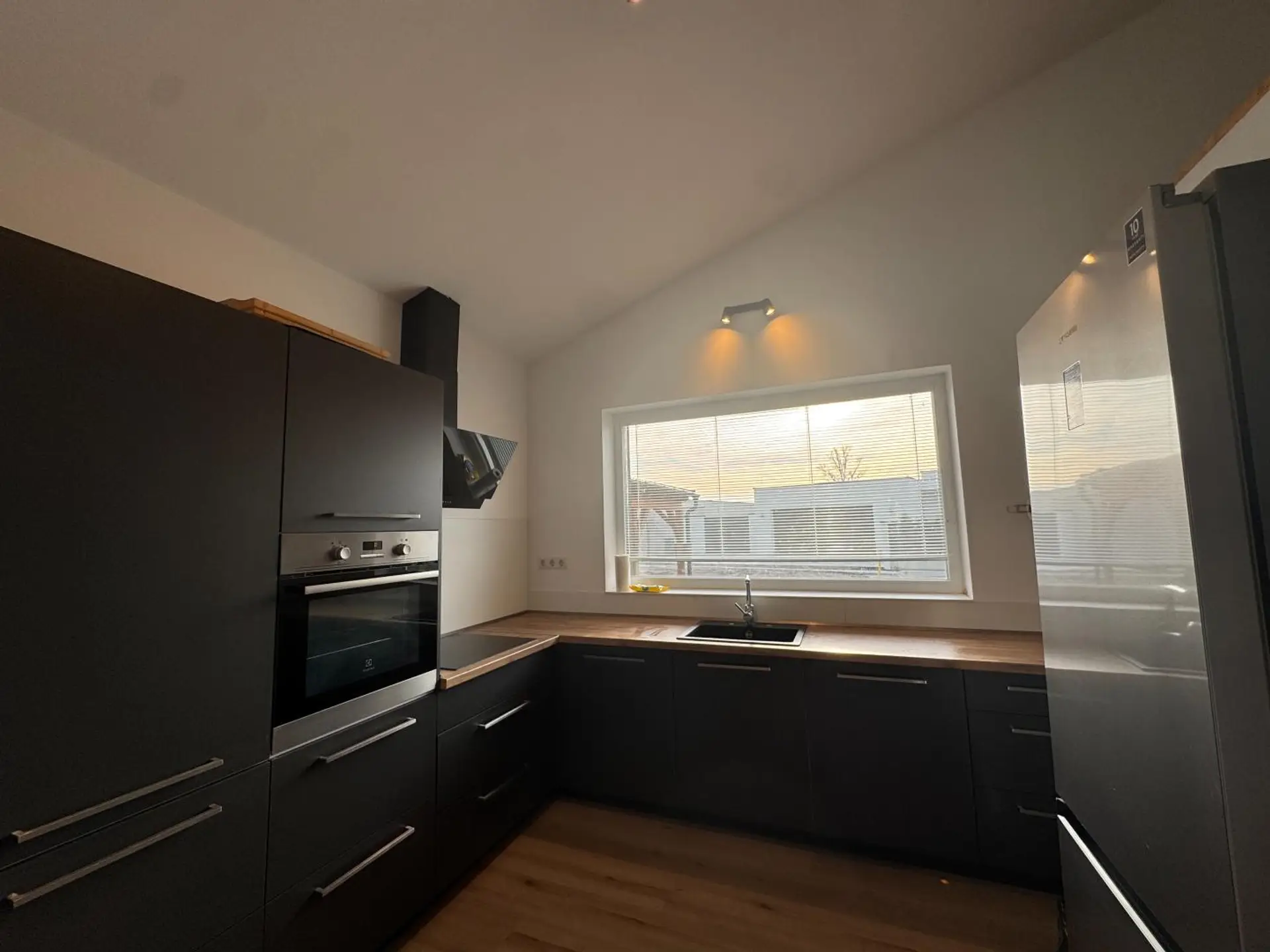 Besonderheiten: Offener Wohnbereich, moderner Kaminofen, überdachte Terrasse, großer Garten, Fußboden in Holzoptik, Fußbodenheizung im gesamten Haus, hochwertige Einrichtung