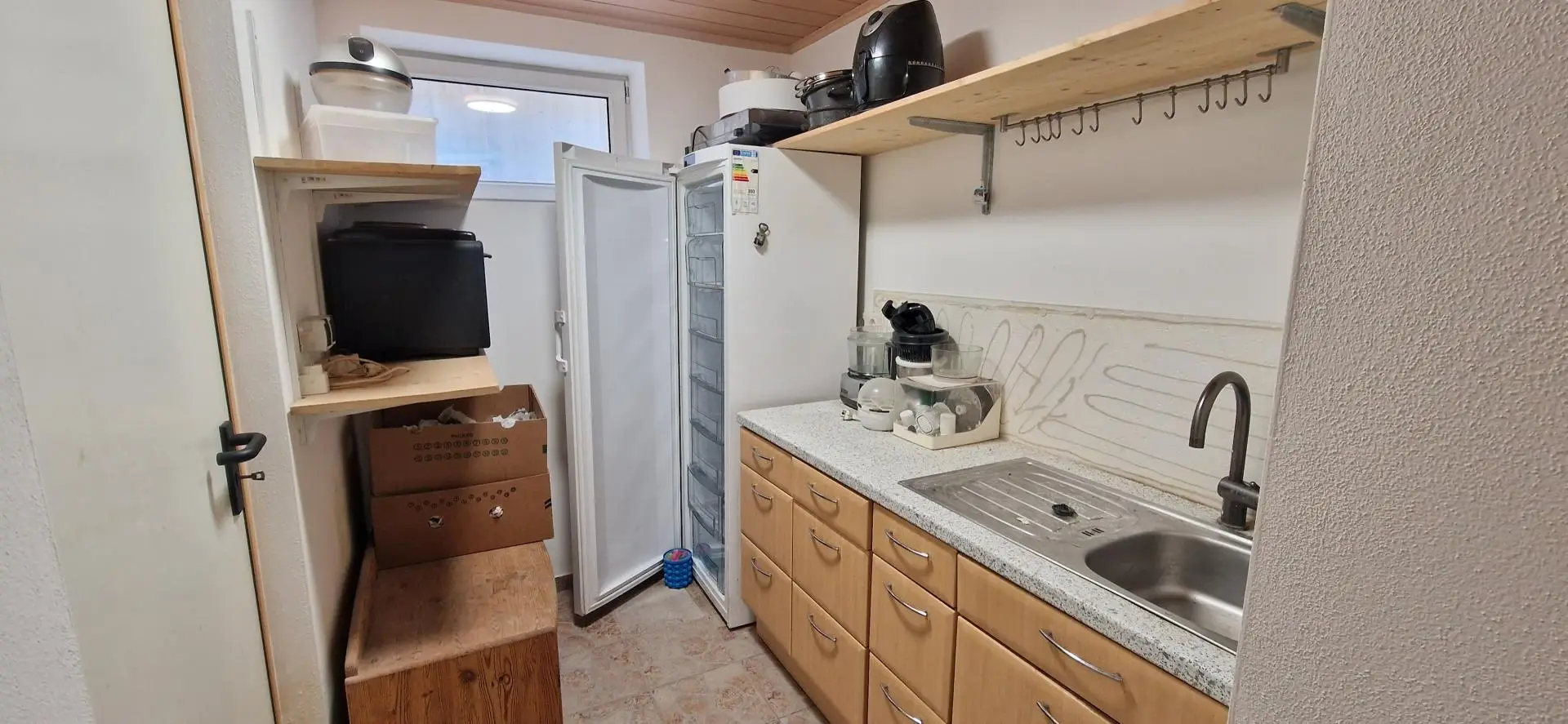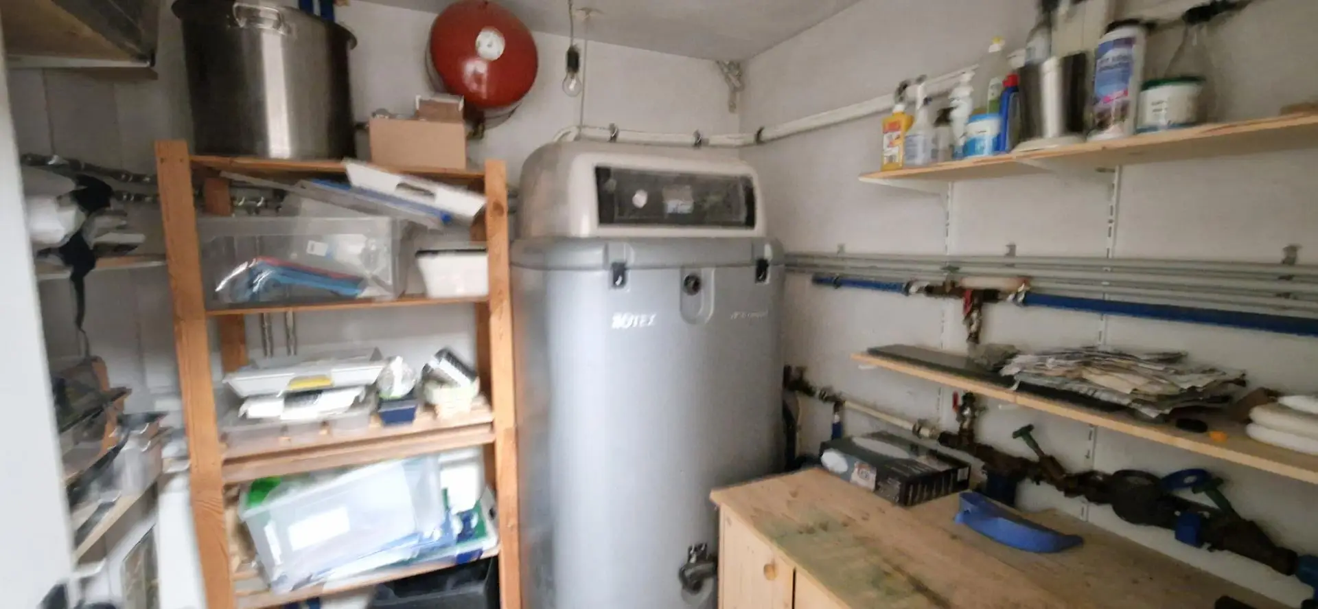 Das Kellergeschoß bietet alle zusätzlichen, praktischen Räumlichkeiten, die man gerne nutzt: ein großes Kellerstüberl angrenzend mit einer kleinen Küchenzeile, eine Wäscheküche, Sauna, den Heizraum und sonstige Abstellräumlichkeiten. Weiters ist von hier aus die gewölbte Kellerröhre begehbar. Hier lassen sich Lebensmittel und Getränke ideal lagern.
