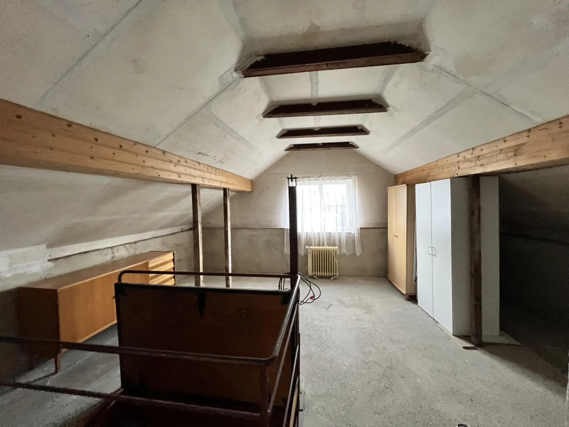 Das Haus wurde 1963 in massiver Bauweise errichtet und bietet auf ca. 75 m² Wohnfläche, verteilt auf zwei Ebenen, im 1. Geschoß neben dem Eingangsbereich 2 Zimmer, eine Küche sowie ein Badezimmer mit Dusche und ein getrenntes WC. Das Dachgeschoß verfügt über 2 weitere Räumlichkeiten, wobei eines davon als Schlafzimmer genutzt wurde und der größere Raum als Schrankraum diente. Hier wurde mit einer Wärmedämmung und dem Innenausbau bereits begonnen, dieser konnte aufgrund tragischer Umstände jedoch nicht fertiggestellt werden.