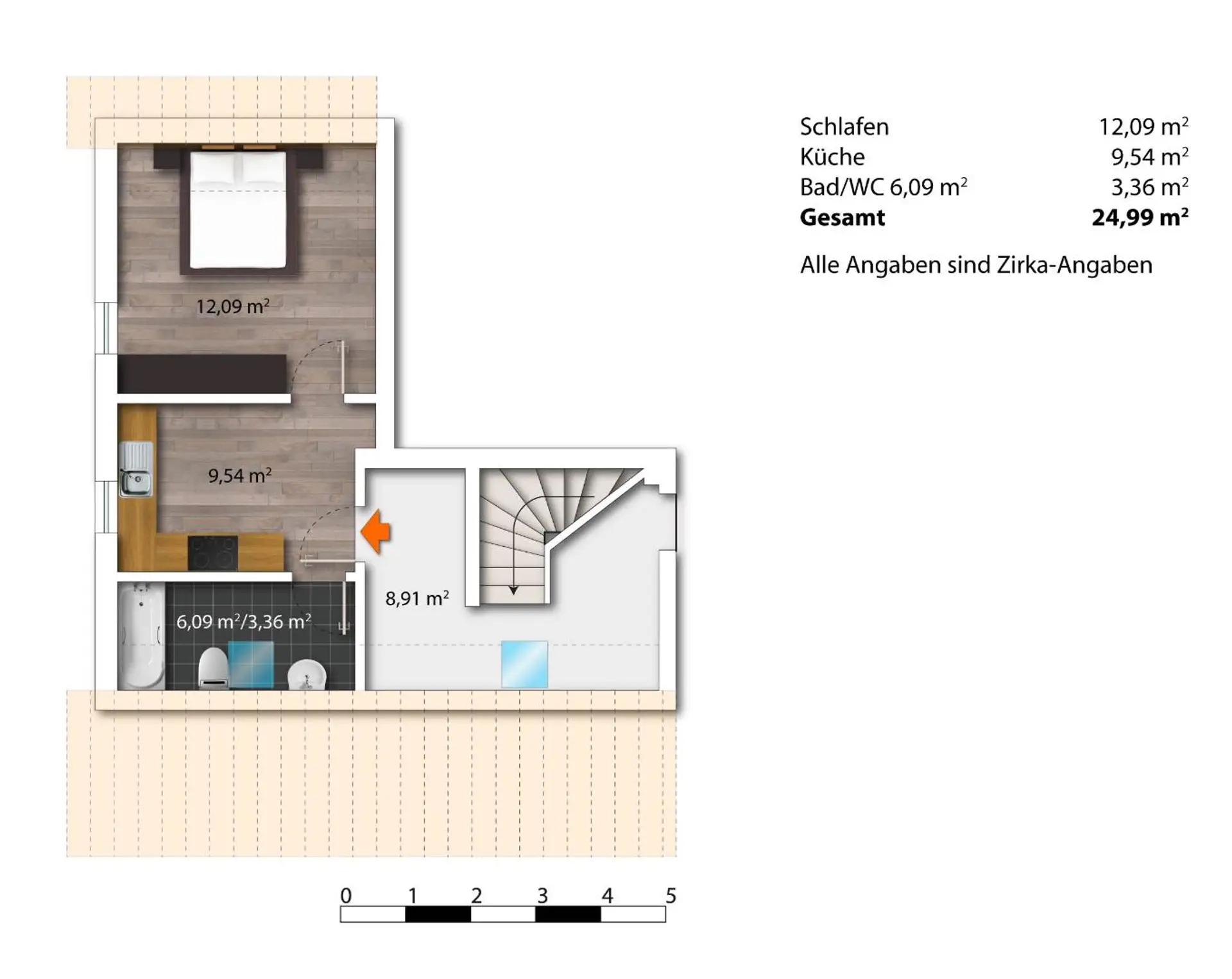 Zur Vermietung steht diese ca. 27 m² große Dachgeschosswohnung , die sich ideal für Singles oder Paare eignet.