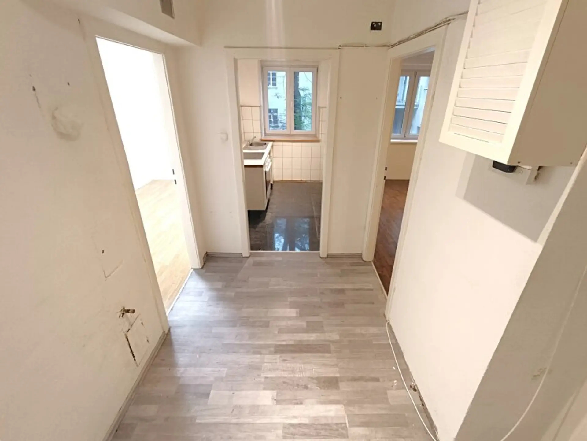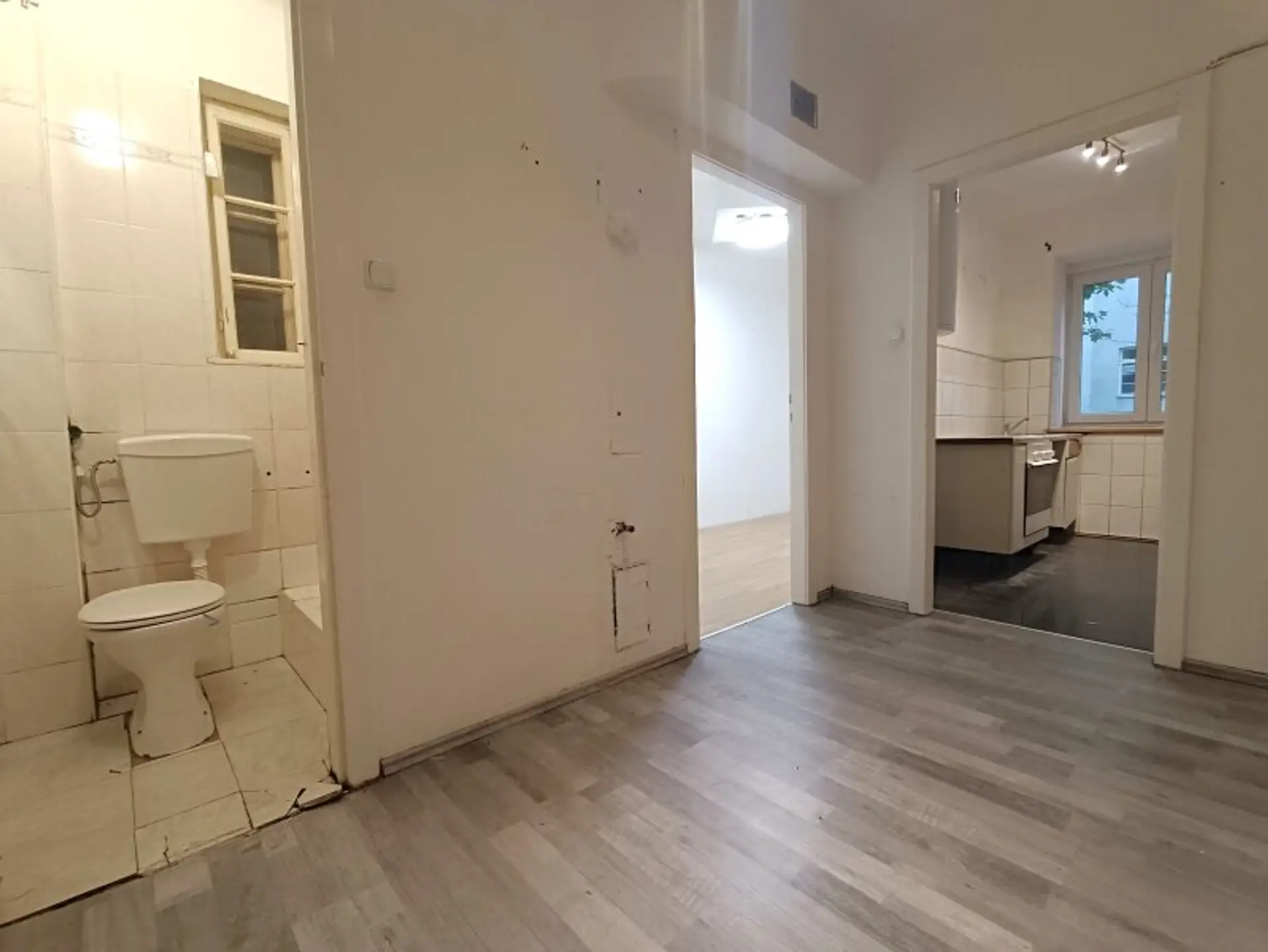 Diese Wohnung befindet sich im Erdgeschoss und bietet eine Gesamtfläche von ca. 35,42 m². Der Vorraum bietet eine Fläche von rund 8,20 m² Platz für Schrankverbau und Garderobe. Je nach Gestaltungswunsch erfordert das Badezimmer eine kompakte Lösung für Toilette und Dusche auf einer Fläche von rund 1,83 m². Die Küche verfügt über ein Fenster in den Lichthof und auf rund 3,50 m² kann der Küchenverbau räumlich separiert werden. Mit rund 19,25 m² bietet das Wohnzimmer wiederum viel Platz für Wohn- und Schlafbereich.