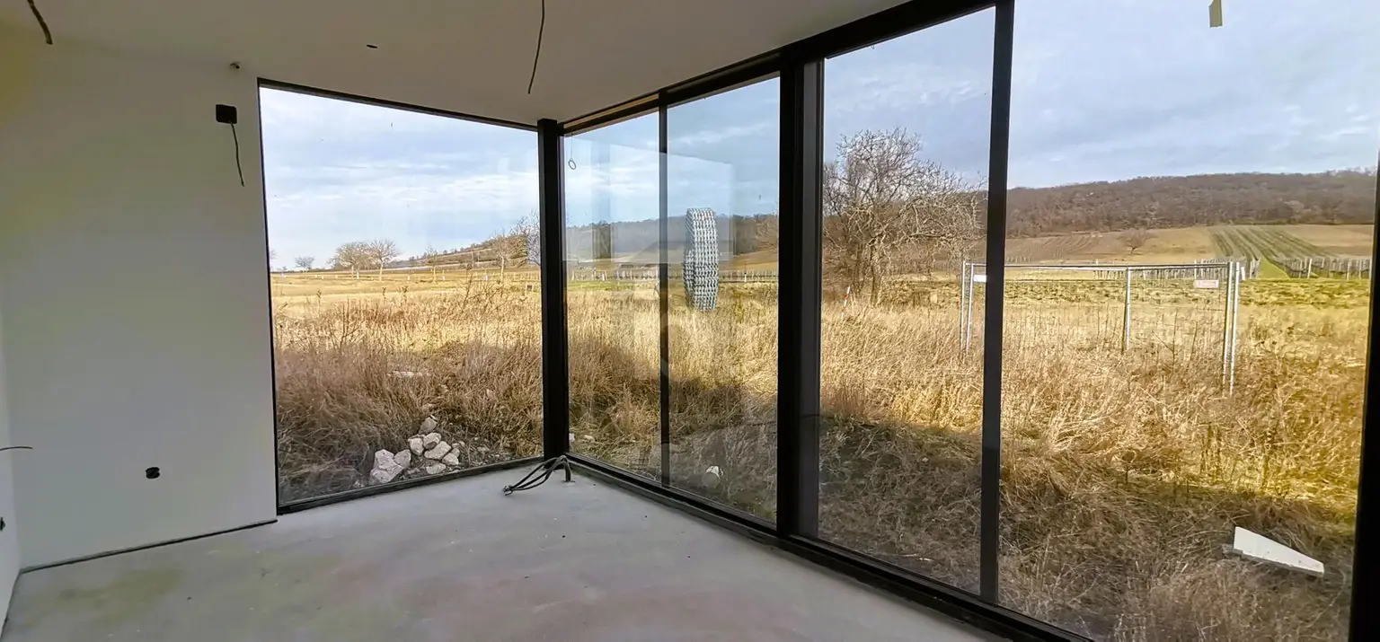 Zeitlose Eleganz, ein idyllischer Ausblick auf die hügelige Weinlandschaft und pure Lebensfreude vereinen sich in diesem hochwertigen Zuhause. Das moderne Design mit der raumbreiten Glasfront verbindet den Wohnbereich und die weitläufige Terrasse mit eingebettetem Pool. Eine elegante Eckverglasung, der großzügige Schrankbereich und das luxuriöse Hauptbad, ebenfalls mit Ausblick in die Natur, machen das Master-Schlafzimmer zu einem besonderen Wohlfühlbereich. Zwei weitere Zimmer, die als Schlafzimmer oder Home Office genützt werden können, verfügen über ein eigenes Gäste-Badezimmer. Das integrierte Smart-Home-System zur komfortablen Steuerung der Haustechnik, eine effiziente Fußbodenheizung und die moderne Klimaanlage sorgen für ein optimales Raumklima. Genießen Sie dieses einmalige Wohngefühl, eingebettet in die sanften Hügel der sonnenreichen Weinlandschaft.