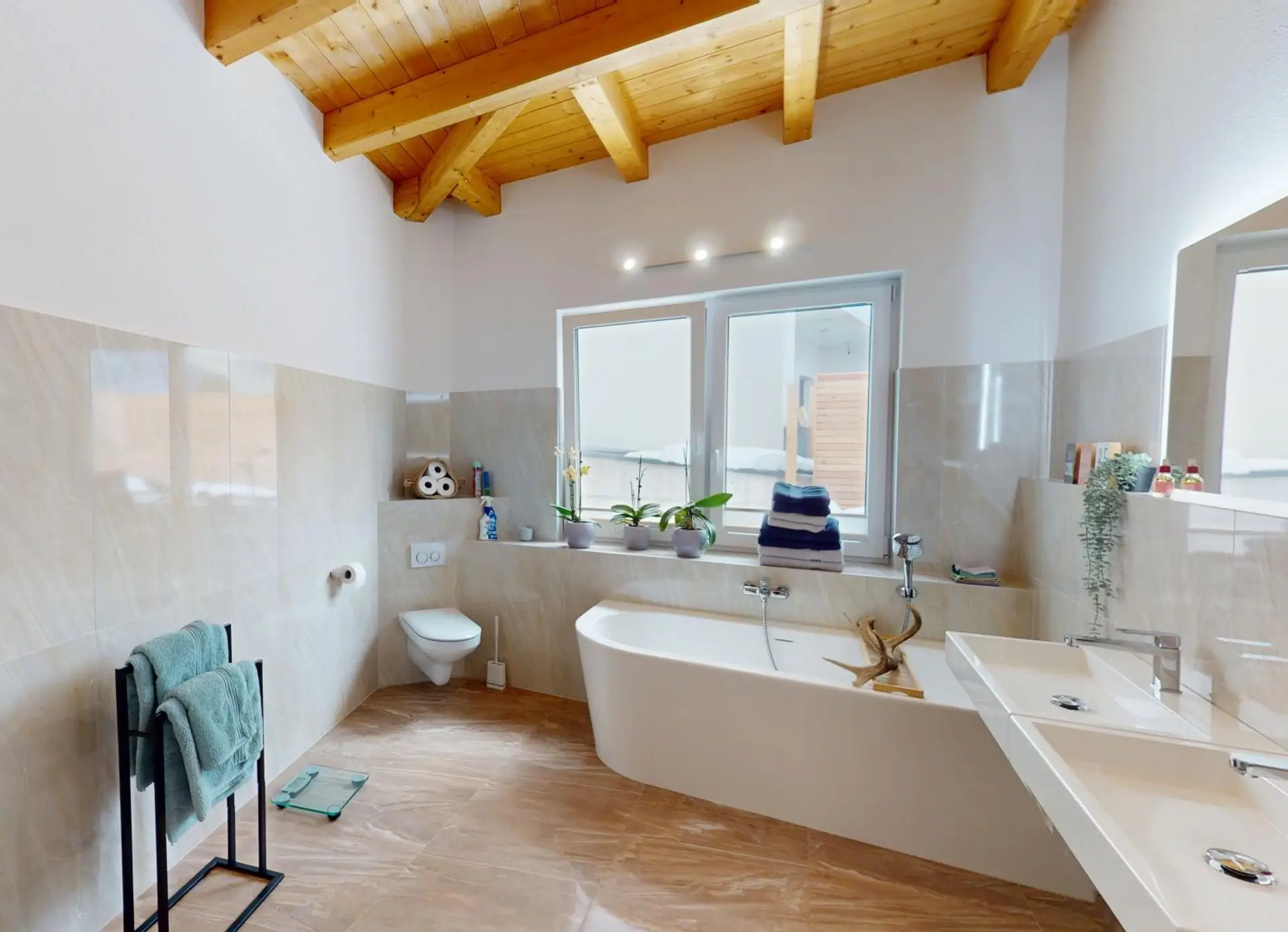 • Zwei Badezimmer, eines davon mit Dusche und Badewanne