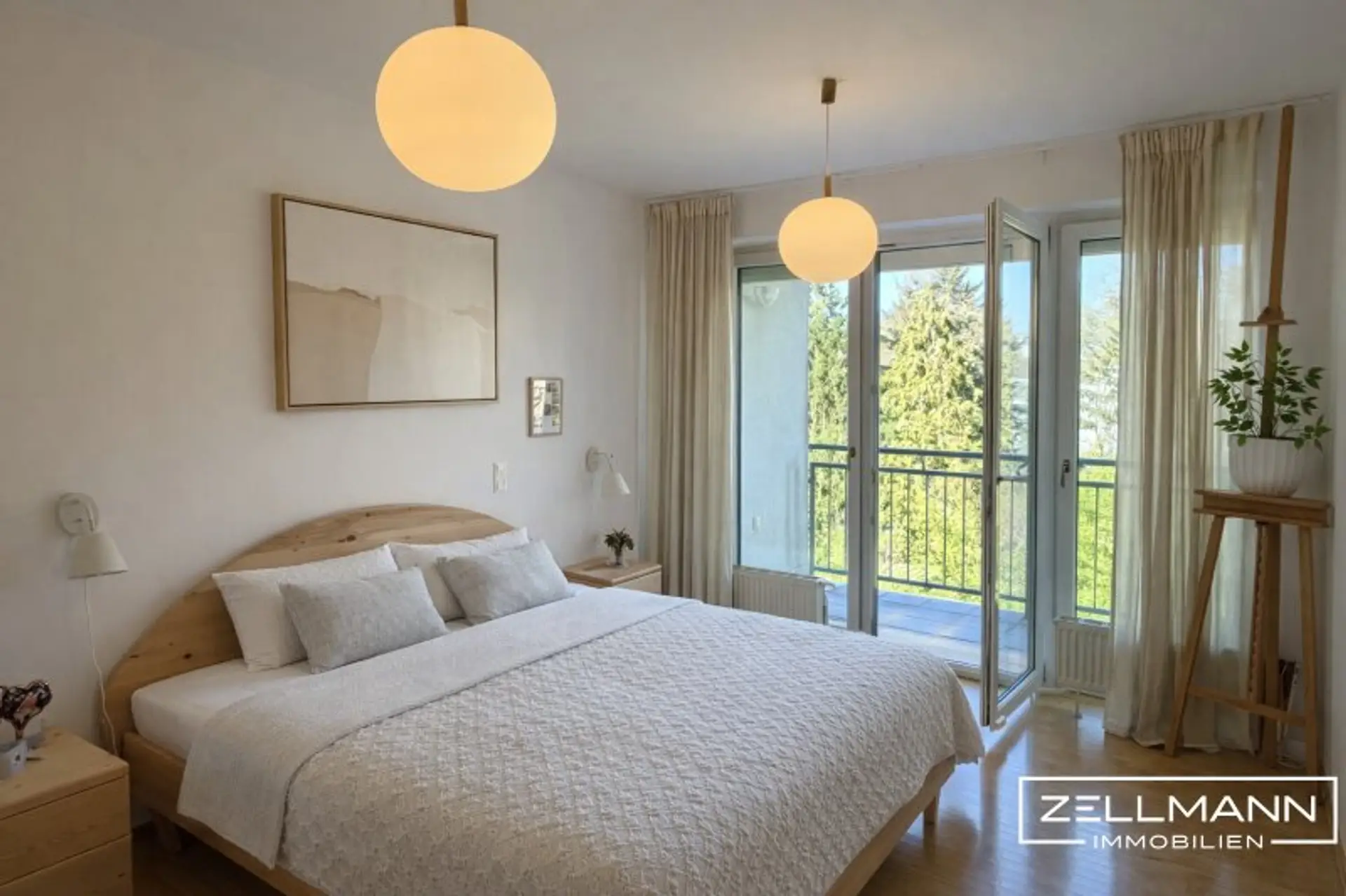Vom Hauptschlafzimmer aus gelangen Sie direkt auf einen eigenen Balkon – ein ruhiger, geschützter Rückzugsort mit Blick ins Grüne. Auch hier zeigt sich die besondere Qualität der Lage: selbst in den privaten Bereichen begleitet Sie die angenehme Weite und Ruhe dieser Umgebung.