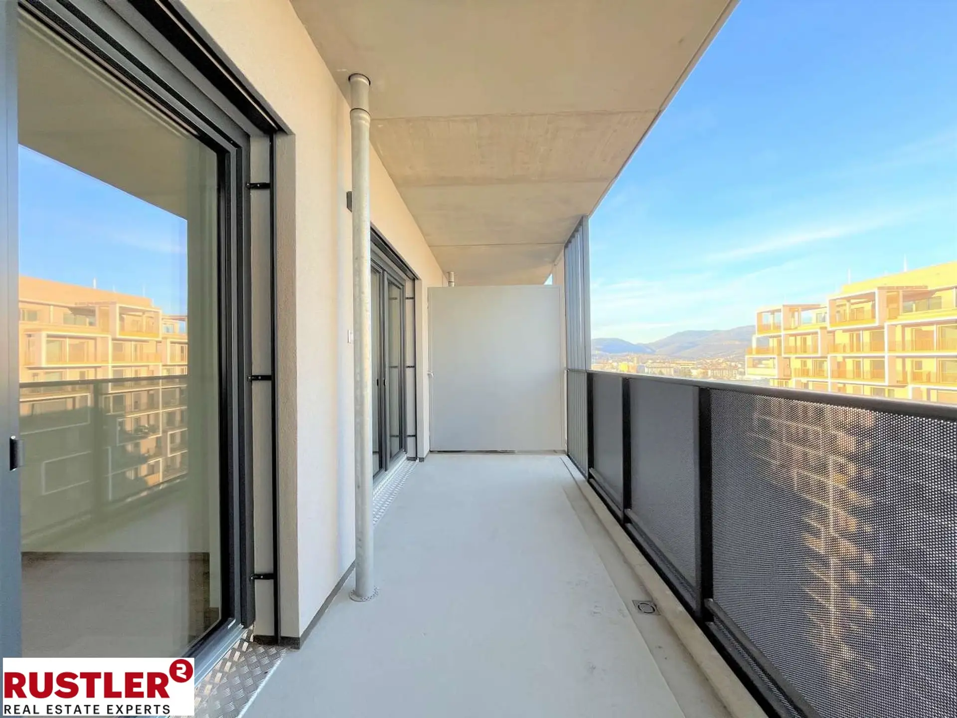 Treten Sie ein in diese exklusive 2-Zimmer-Wohnung im 15. Obergeschoss, die modernes Wohnen mit einer beeindruckenden Aussicht über die Dächer von Graz verbindet. Auf ca. 52,53 m² erwartet Sie ein durchdachtes Raumkonzept, das Funktionalität und Stil perfekt vereint – ideal für Singles oder Paare, die Wert auf Qualität und eine einzigartige Lage legen. Das Herzstück der Wohnung ist der offene Wohnbereich mit einer Fläche von ca. 25,25 m², der eine moderne, möblierte Küche bereits inkludiert. Hier haben Sie genug Platz, um kulinarische Abende zu genießen, zu entspannen oder im Homeoffice zu arbeiten. Ein besonderes Highlight ist der geräumige, ostseitige Balkon, der sowohl vom Wohnzimmer als auch direkt vom aus begehbar ist. Das Schlafzimmer bietet durch die Raumgröße von ca. 17,85m² die Möglichkeit, den Raum mittels Schrankraum angehnehm zu trennen. Ein besonderes Highlight ist hier der direkte Zugang zum Badezimmer - das ist ausgestattet mit einer modernen Dusche, einem Handtuchtrockner und einem Waschmaschinenanschluss. Besonders komfortabel gestaltet sich das separate WC mit Handwaschbecken und die Ankleidenische die Platz für eine Garderobe bietet. Ein Kellerabteil und der Lift runden das Gesamtpaket ab. Fakten im Überblick:- Wohnfläche: 52,53 m² - Zimmer: 2 (Wohnküche und Schlafzimmer) - Balkon: 12,22 m², ostseitig - Etage: 15. Stock mit Lift und Panoramablick - Optional: Tiefgaragenplatz um € 85 (brutto) / MonatLage, die begeistert: Die Wohnung befindet sich im trendigen Stadtteil rund um den Reininghauspark. Hier finden Sie eine perfekte Mischung aus urbanem Leben und grüner Umgebung. Supermärkte, Cafés und Restaurants sind nur einen Katzensprung entfernt. Die Nähe zur FH Joanneum macht die Wohnung besonders attraktiv für Studierende und junge Berufstätige. Dank der hervorragenden Anbindung an den öffentlichen Nahverkehr sind Sie in wenigen Minuten im Zentrum von Graz. Auch das Sport- und Wellnessbad Auster ist in wenigen Radminuten erreichbar und ist besonders für Sportbegeisterte interessant. Die Bruttomiete beinhaltet Hauptmietzins, Betriebskosten und USt. Heiz- und Energiekosten werden separat abgerechnet. Mietbeginn: ab sofort Mietdauer: auf 5 Jahre befristet Jetzt online anfragen oder telefonisch Kontakt aufnehmen – wir melden uns zeitnah mit Terminvorschlägen für eine Besichtigung.Weitere Immobilien finden Sie auf unsererImmobiliensuche - RUSTLER
