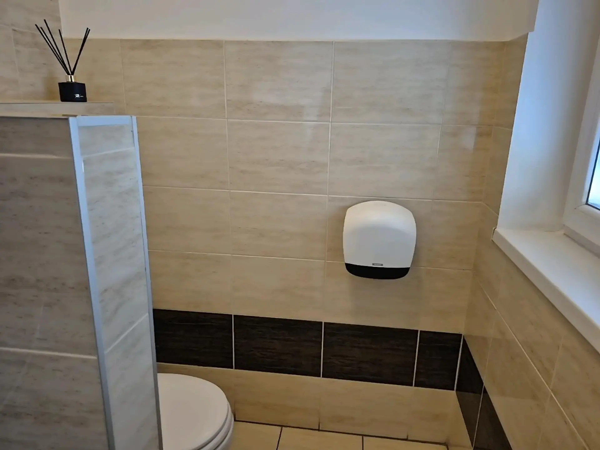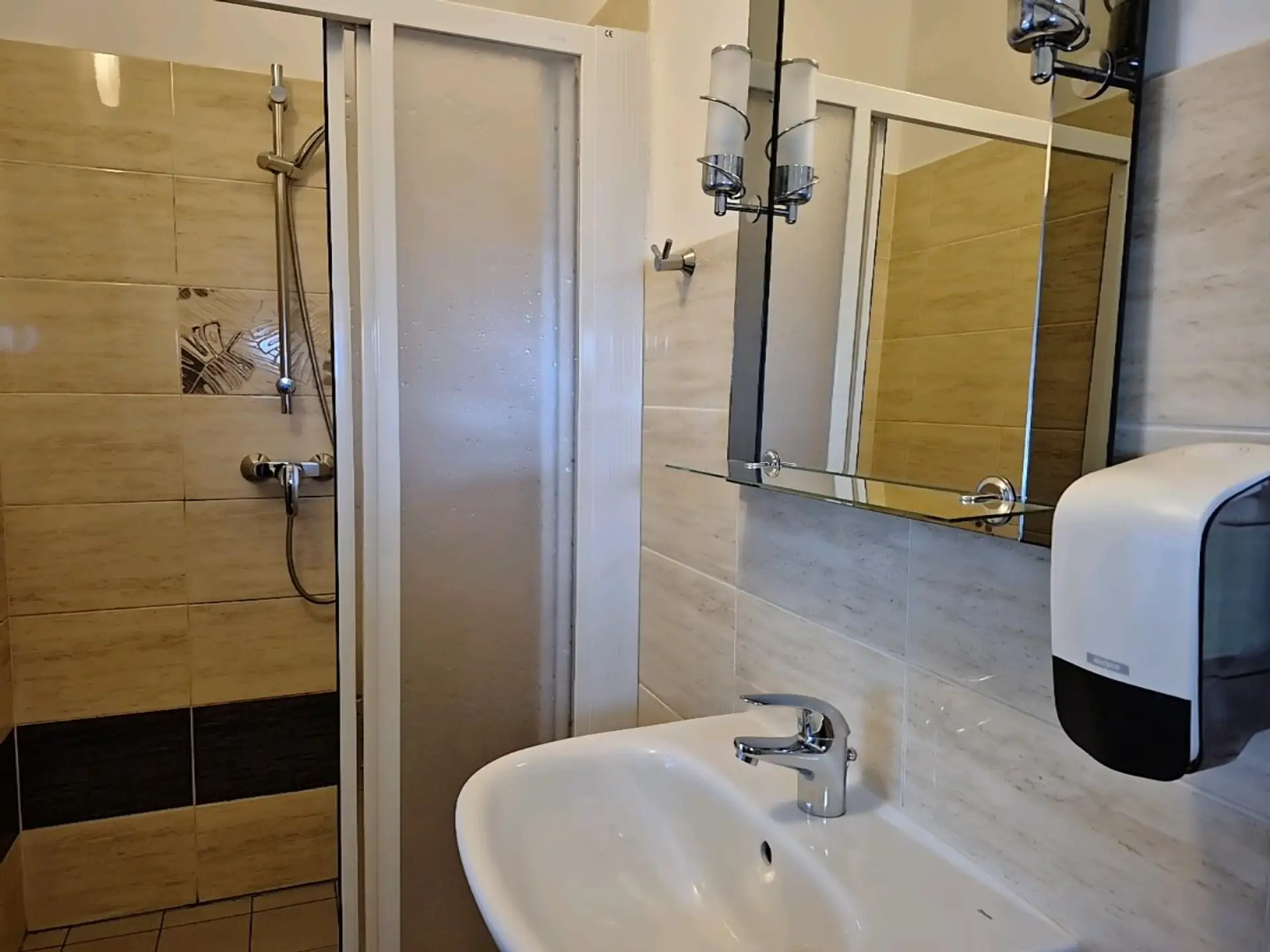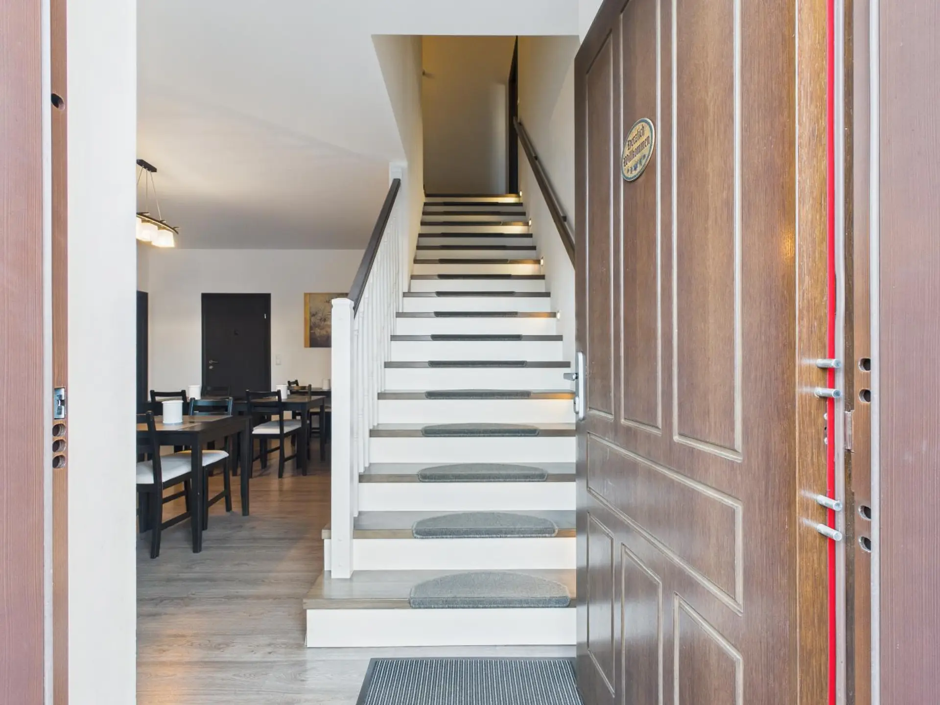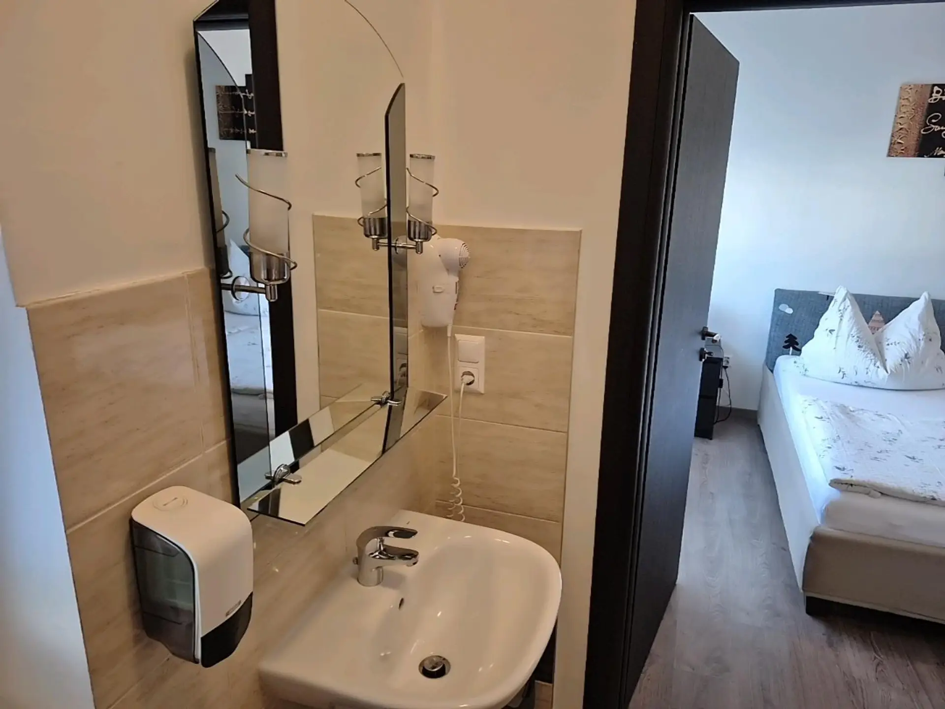Obergeschoss: Drei weitere Gästezimmer mit integrierten Nassräumen sowie ein Frühstücksraum mit Küche. Insgesamt fünf Gästezimmer mit bis zu 10 Betten stehen für die Vermietung zur Verfügung