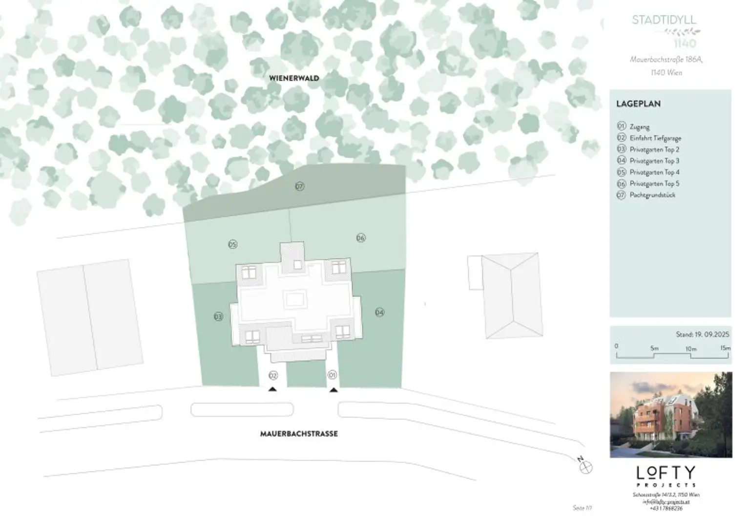 Die exklusive Neubauwohnung ist Teil des Projektes "Stadtidyll" in der Mauerbachstraße 186a, 1140 Wien, das nur wenige Wohneinheiten umfasst und somit ein hohes Maß an Privatsphäre bietet.