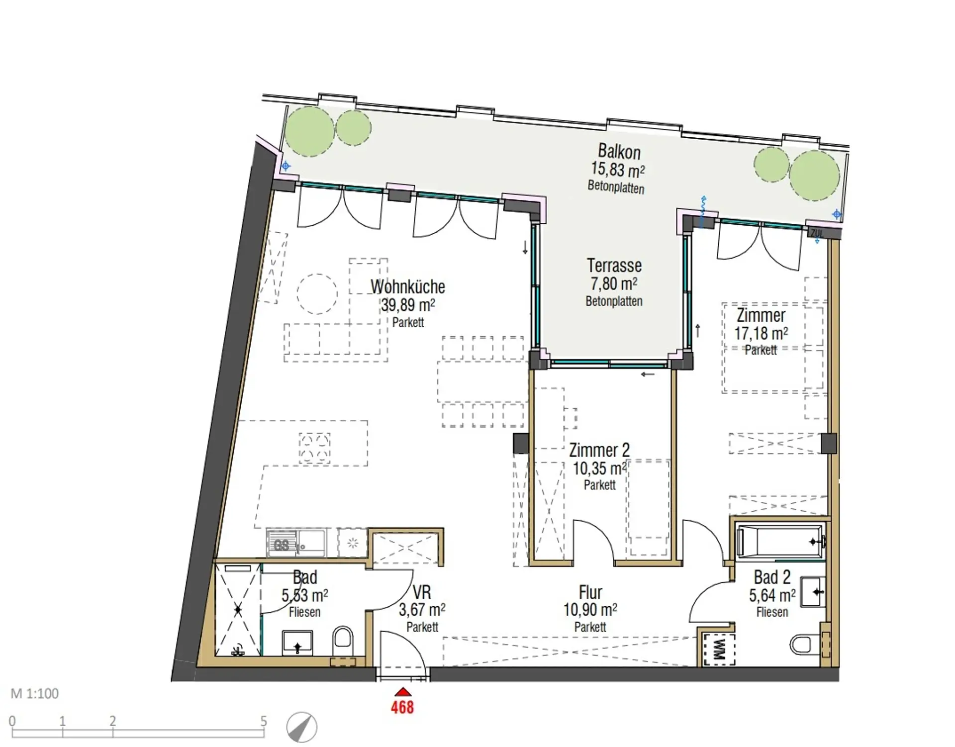Spektakuläres Penthouse mit Terrasse im letzten Stock des Q-Tower Mit seiner goldschimmernden Fassade, 114 Metern Höhe und 34 Geschoßen ist er das architektonische Wahrzeichen des Quartiers "THE MARKS" im 3. Bezirk. (Baujahr 2022) Hier verschmelzen moderner Lifestyle, exklusive Ausstattung und atemberaubende Ausblicke zu einem einzigartigen Wohngefühl. Mit der imposanten Raumhöhe von fast 16 Metern empfängt das repräsentative Foyer Bewohner und Besucher des Q-Tower. Im 34. Stockwerk erwartet Sie ein außergewöhnliches Penthouse mit 360°-Panoramablick über Wien. Die 3-Zimmer-Residenz überzeugt durch eine große, offene Wohnküche mit hochwertiger Küche samt Kochinsel, maßgefertigten Einbaumöbeln im Vorzimmerbereich + Badezimmer, einer atemberaubenden Nord-West Terrasse sowie modernster Haustechnik: raumgesteuerte Heizung/Kühlung und elektrisch abgedunkelte Rollläden sorgen für höchsten Komfort. Auszug der Ausstattung: - moderne Küche mit Kochinsel & Weinkühlschrank - hochwertige Parkettböden in Eiche - Feinsteinzeug in Bad & WC, Format 60 × 30 cm (STAR GRES QUBUS GREY) - Bodentiefe Kunststofffenster mit Dreifachverglasung - Sicherheitstür RC 3 (einbruchhemmend, 6-fach Verriegelung) - Raumweise steuerbare Heizung & Kühlung (Fernwärme / Multisplit) - Großzügige Gemeinschaftsbereiche: Fitness, Wellness mit Sauna, Kinderspielplatz, Co-Working, Laufbahn, Gemeinschaftsräume - Fahrradabstellplätze, Kinderwagenraum, Müllraum - App-/Kalender-basierte Zutritts- & Buchungssysteme für Community-Flächen - Paketboxen und Hausverwaltungs-App - Tiefgaragenplatz mit E-Ladestation Infrastruktur & Verkehrsanbindung: Die hervorragende Lage bietet ideale Anbindungen: Die U3-Station Gasometer sowie die Autobuslinie 72A sind in wenigen Minuten fußläufig erreichbar. Kurze Wege in die Innenstadt oder zum Flughafen machen die Lage besonders attraktiv. Einkaufsmöglichkeiten befinden sich in unmittelbarer Nähe. Energieausweis: Klasse: A+ HWB: 14,82 kWh/m2a fGEE: 0,69 Konditionen: Kaufpreis: € 1.050.000,- zzgl. Tiefgaragenplatz mit E-Ladestation € 35.000,- BK Wohnung: € 512,03 brutto BK Garagenstellplatz: € 44,96 Provision: 3% des Kaufpreises zzgl. USt.; Beziehbar: nach Vereinbarung Die Übernahme einzelner Möbelstücke ist nach Rücksprache mit dem Eigentümer möglich. Dieses Penthouse verbindet exklusive Wohnqualität mit urbaner Infrastruktur – ein Zuhause für alle, die das Besondere suchen. Description in English: Spectacular penthouse on the 34th floor of Vienna’s Q-Tower with sweeping 360° city views. Three rooms, an airy living/dining area with chef’s kitchen (island & wine fridge), custom built-ins, room-by-room heating/cooling (district heating & multisplit), triple glazing, RC-3 security door and electric shutters. Building amenities include fitness, sauna, co-working, running track and community spaces. Underground parking with EV charging available. U3 “Gasometer” within walking distance. Energy class: A+ (HWB 14.82 kWh/m²a; fGEE 0.69) Asking price: € 1.050.000,- + Garage space with electric charging station € 35.000,- Current service charges: € 556.99 / month Commission: 3% + VAT Ansprechpartner: Frau Daniela Schachinger, Dipl.-IM || +43 676 39 29 019 || ds@jpi.at Wir weisen darauf hin, dass zum Verkäufer aufgrund einer regelmäßigen Beauftragung mit Vermittlungsgeschäften ein wirtschaftliches Naheverhältnis besteht.