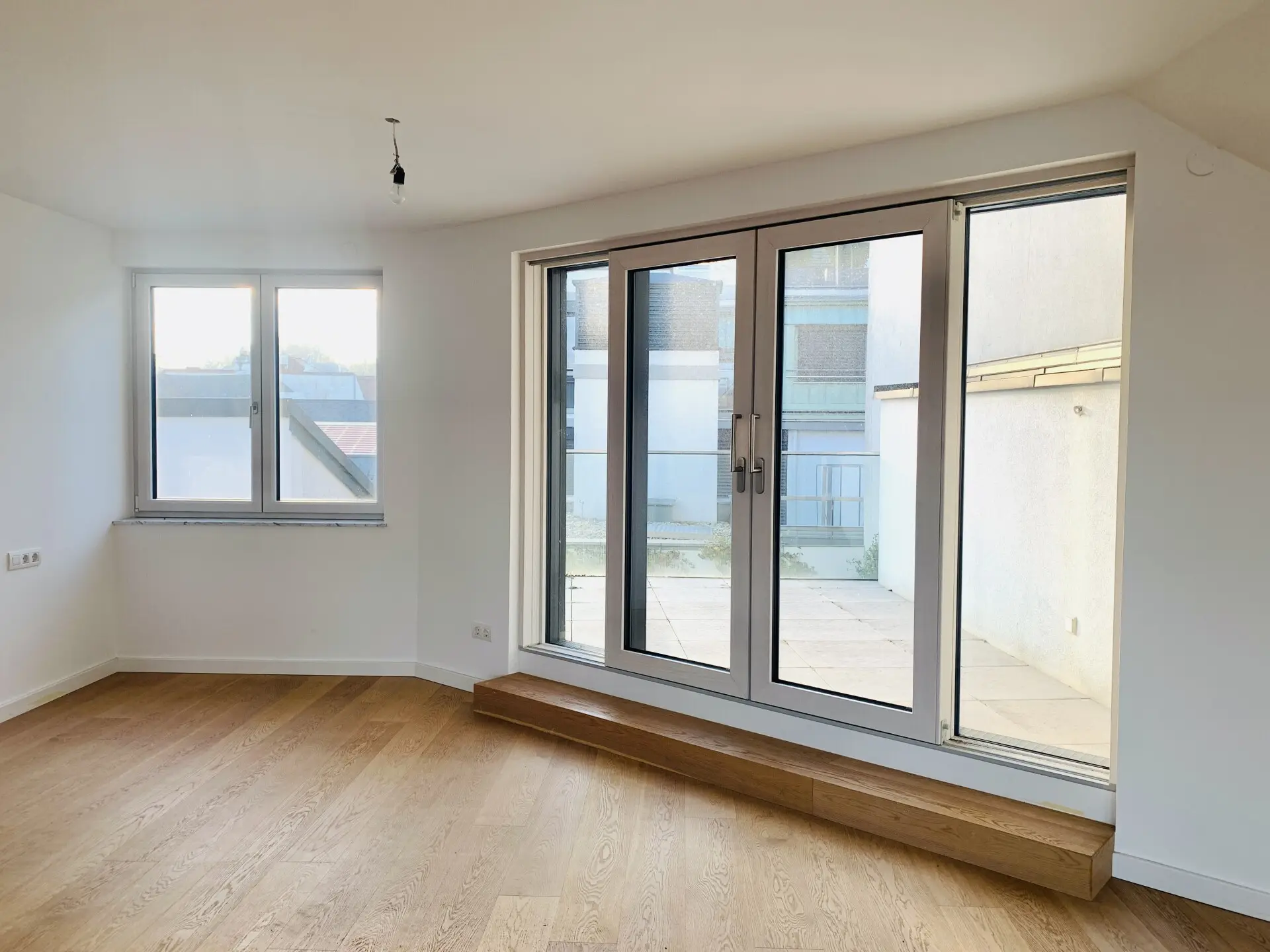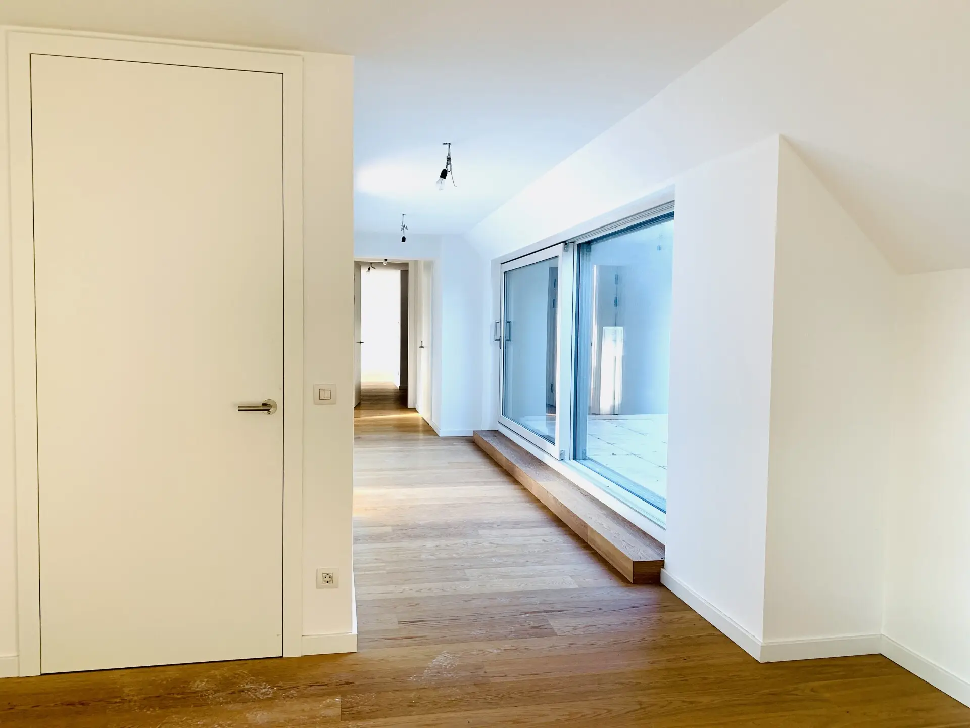 Das Haus, welches 2017 errichtet worden ist, liegt in einer Sackgasse unweit der Endstation der Straßenbahnline D. Die Wohnung nimmt den gesamten letzten Stock des Hauses ein, was für ein Maximum an Privatsphäre sorgt.