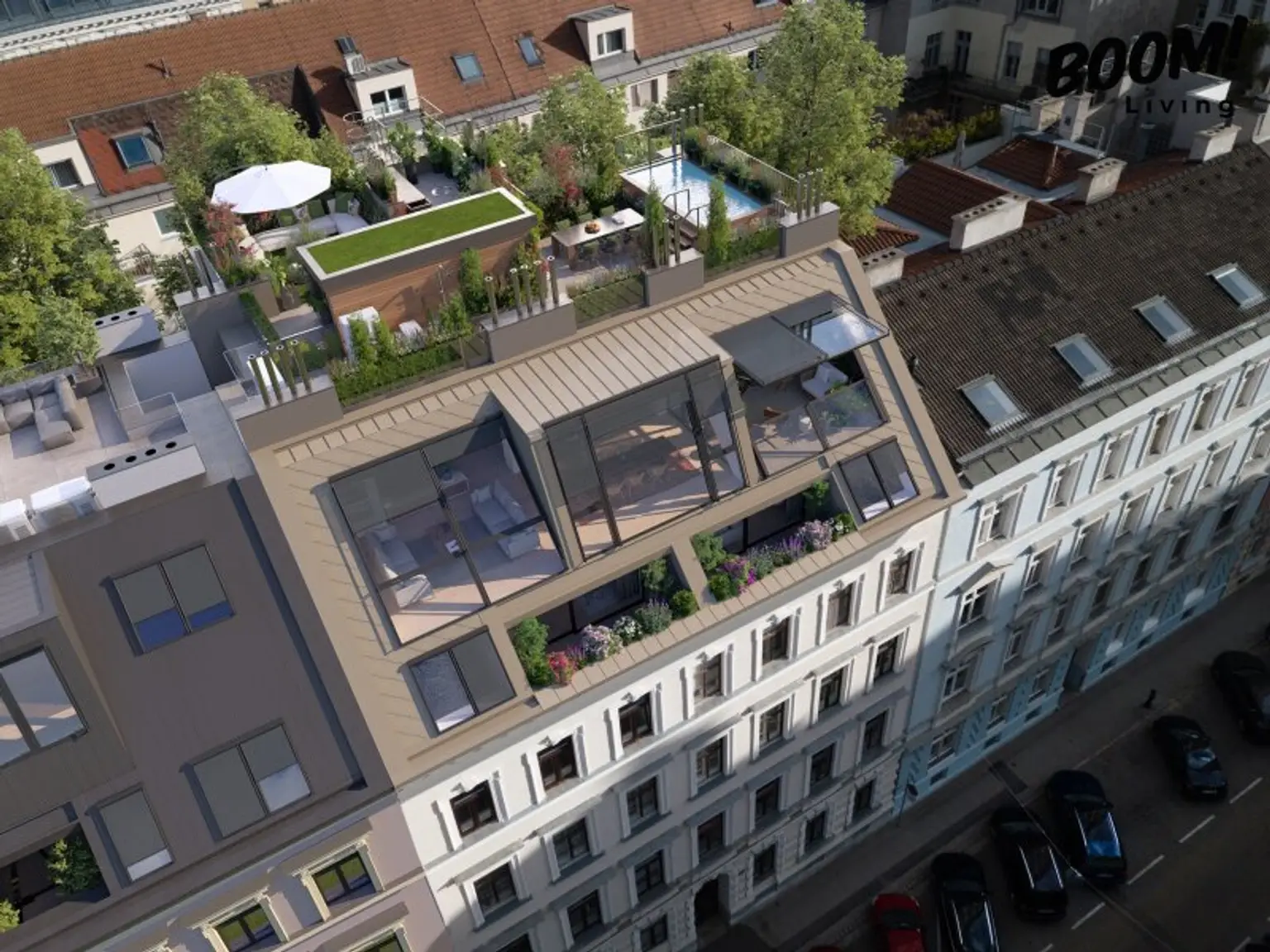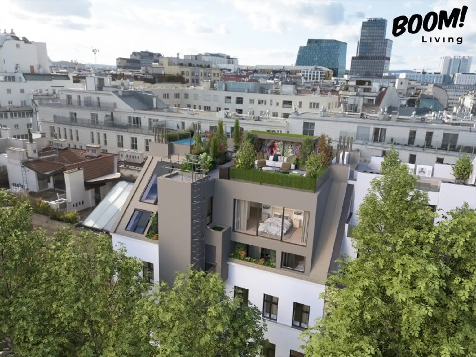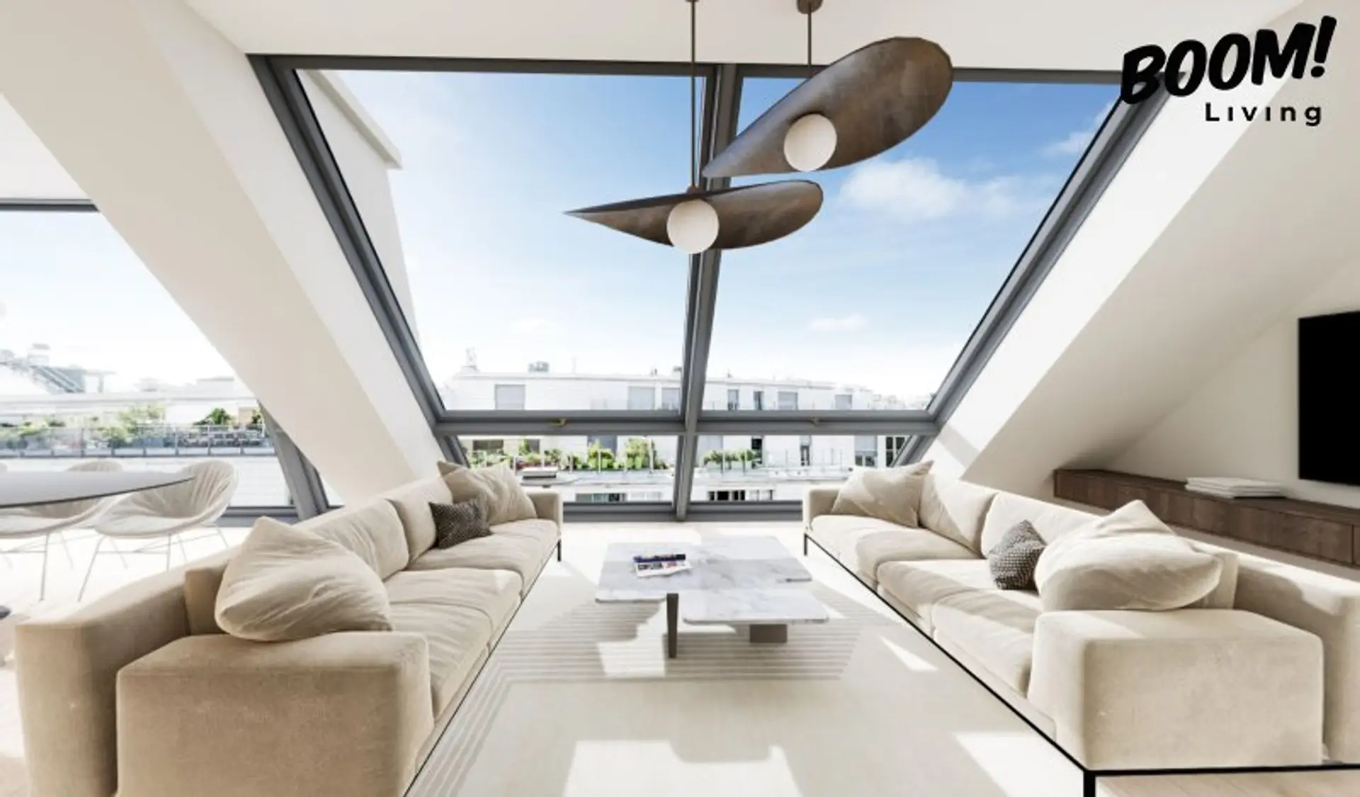 Die Wohnung beeindruckt durch ihre offene, lichtdurchflutete Architektur, hohe Decken und großflächige Fensterfronten. Der Wintergarten sowie die Dachterrassenflächen bieten ein exklusives Wohngefühl mit Weitblick über die Dächer des 3. Bezirks.