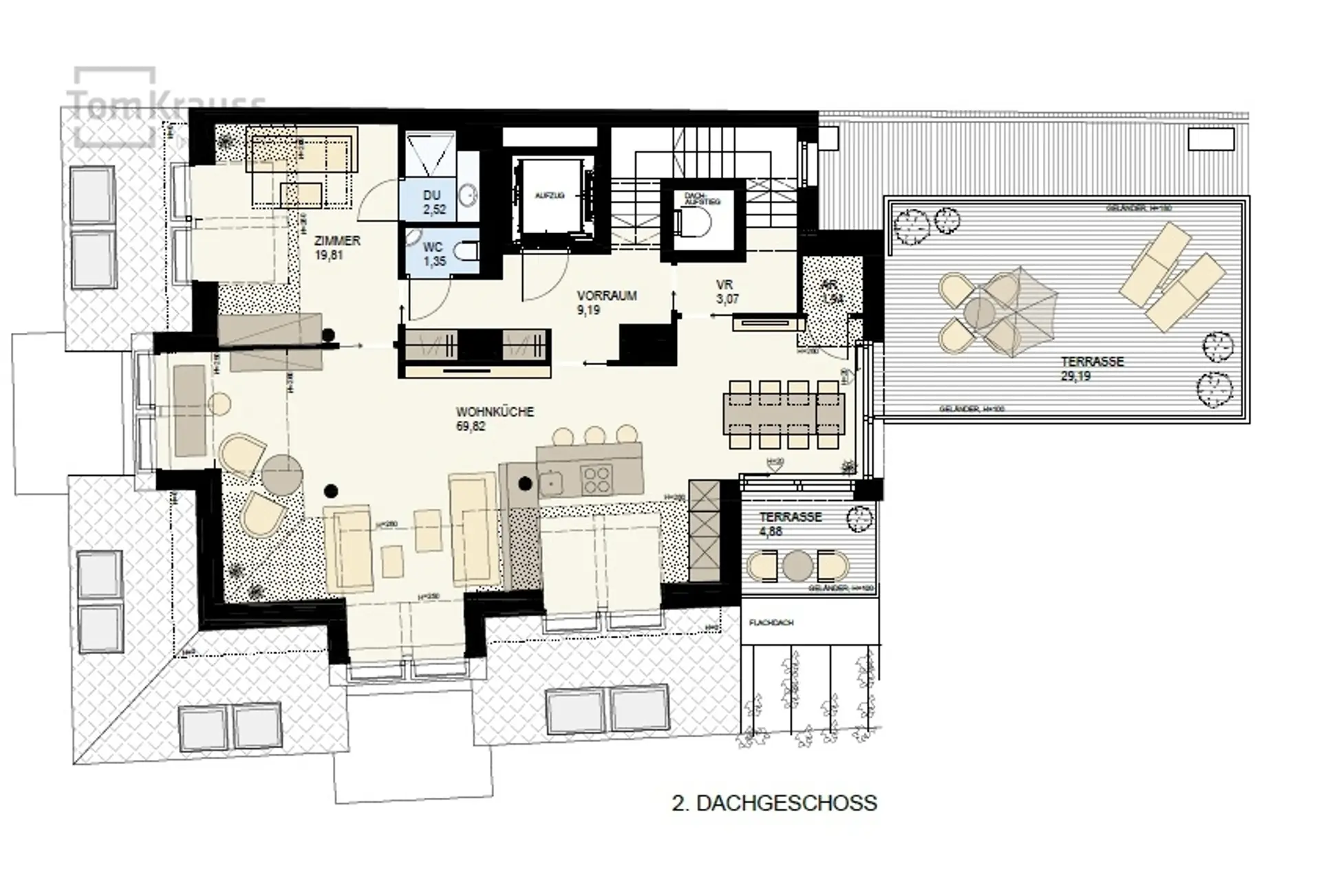 Großzügige Räume verbinden sich mit einer Dachterrasse, die den Blick in alle Richtungen öffnet.