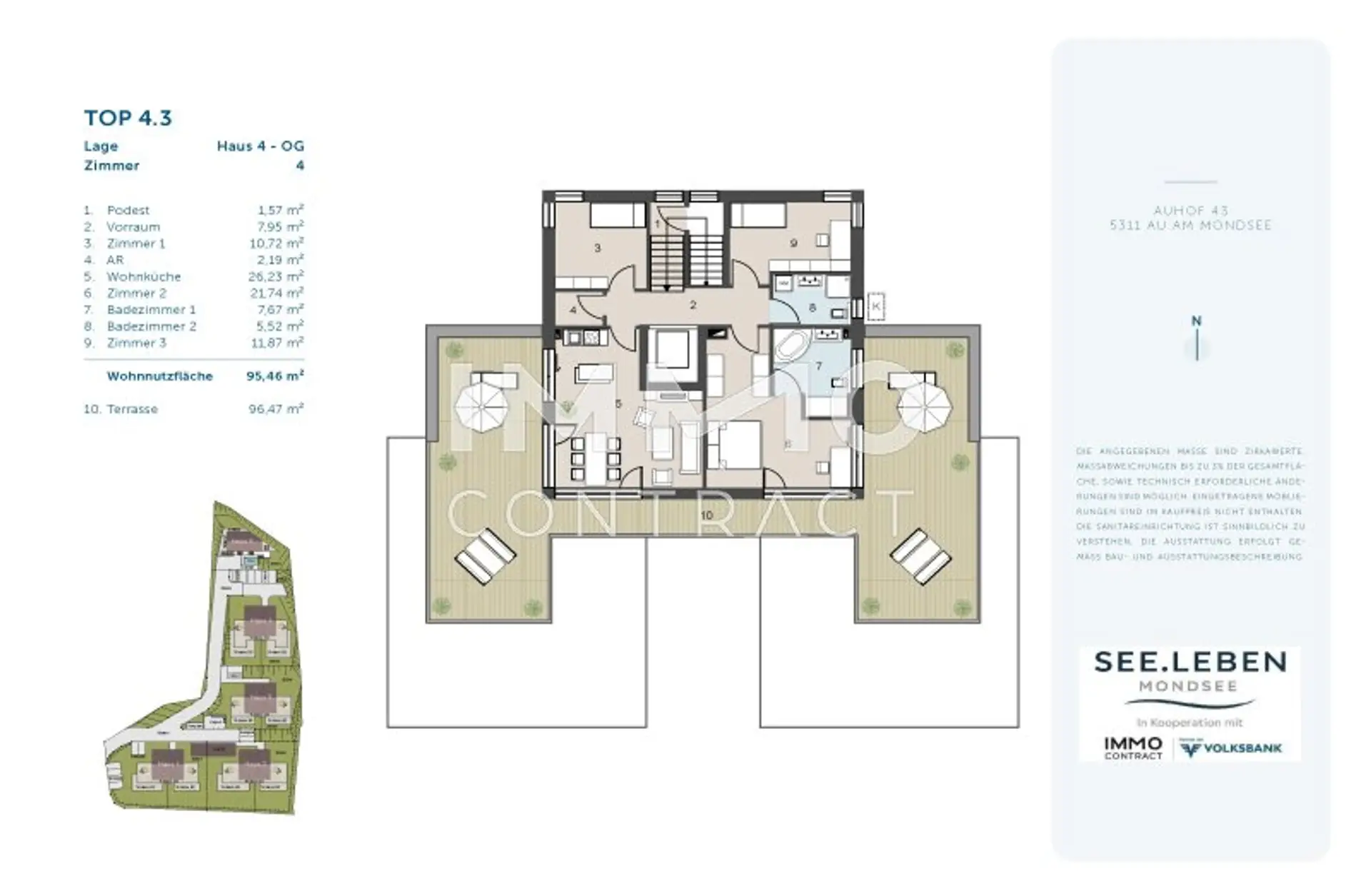 Fünf moderne Häuser mit insgesamt 12 Eigentumswohnungen und einer luxuriösen Villa schaffen ein außergewöhnliches Wohnambiente in traumhafter Lage. Dank der leichten Hanglage genießen alle Einheiten einen einzigartigen Ausblick auf den Mondsee und das Bergpanorama.